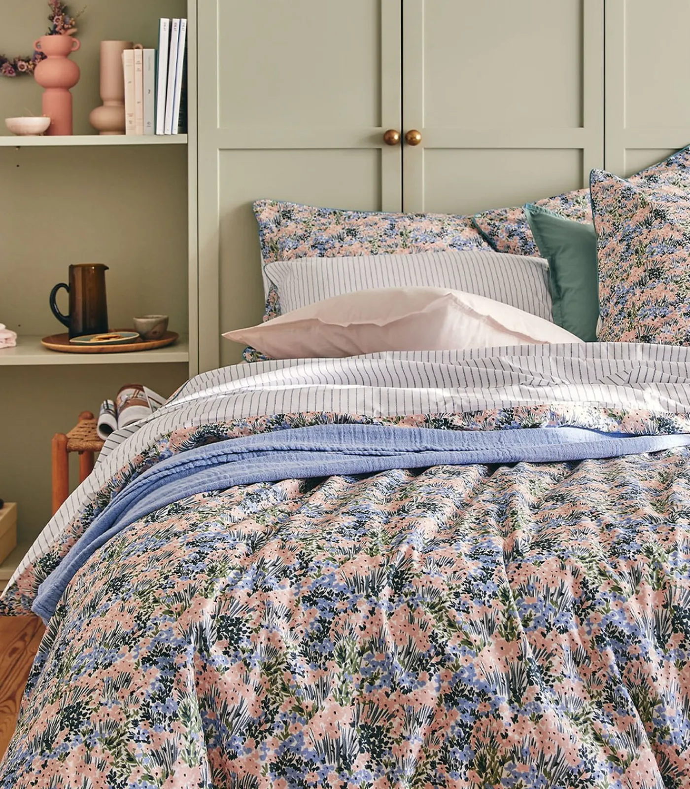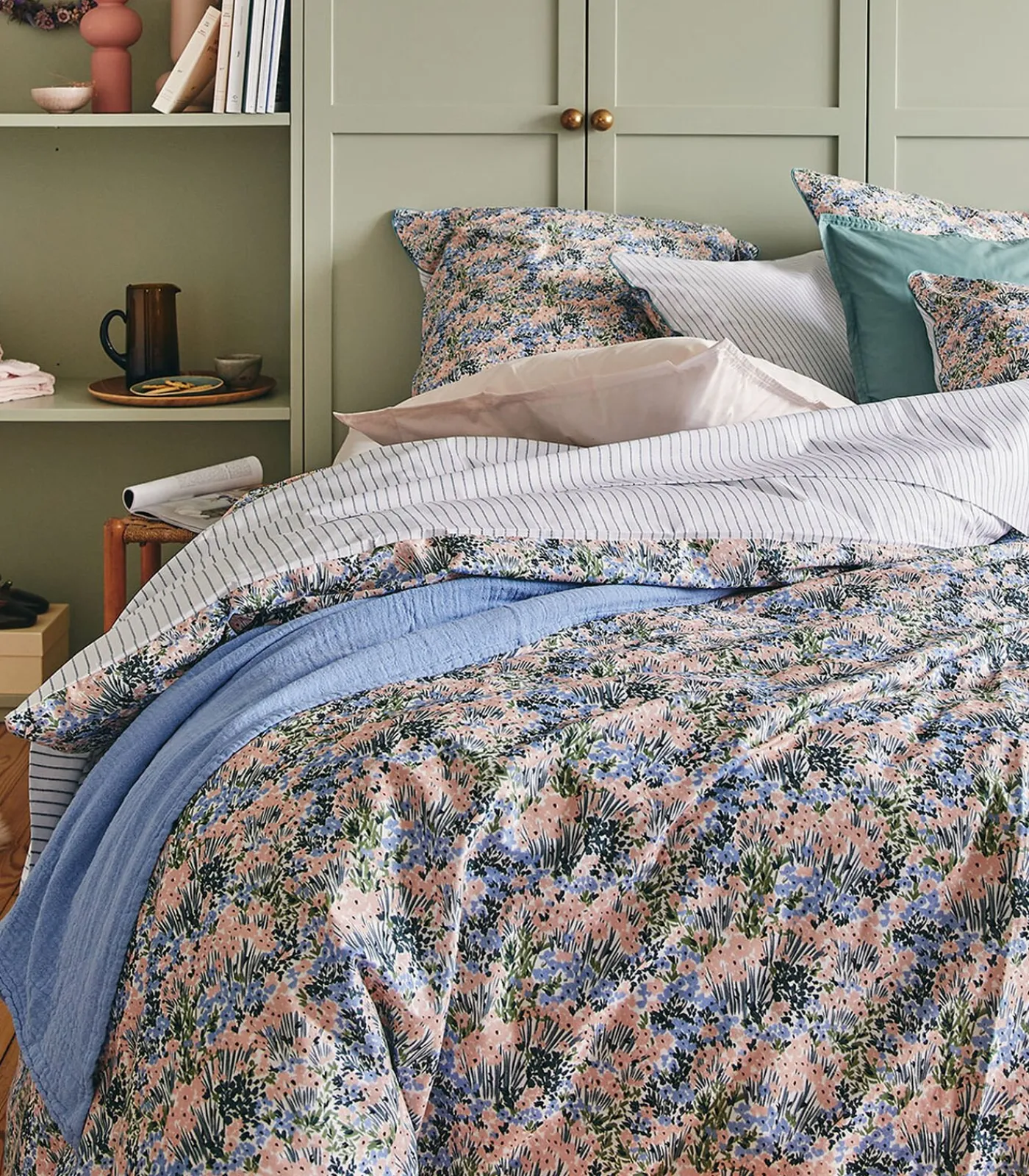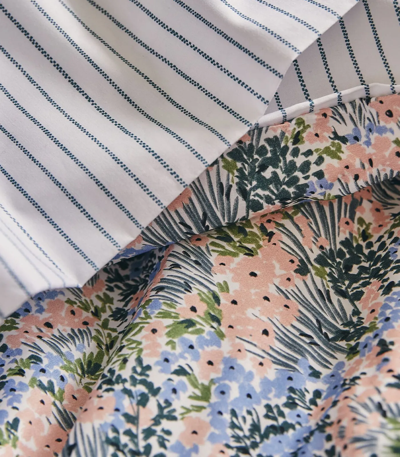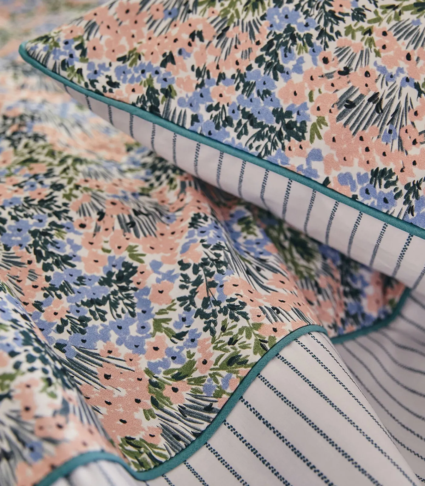 Laat u meevoeren naar Bosquet, een betoverende tuin die delicatesse en verfijning subtiel combineert. De levendige tinten van de bloeiende planten en struiken smelten samen in een matte textuur die doet denken aan impressionistische schilderijen. Het met de hand getekende motief geeft de slaapkamer een frisse en sprankelende stijl. Dit bedlinnen van katoen perkal mengt roze, blauwe en groene tinten met een rand van agave katoen en stippellijnen op de achterkant.