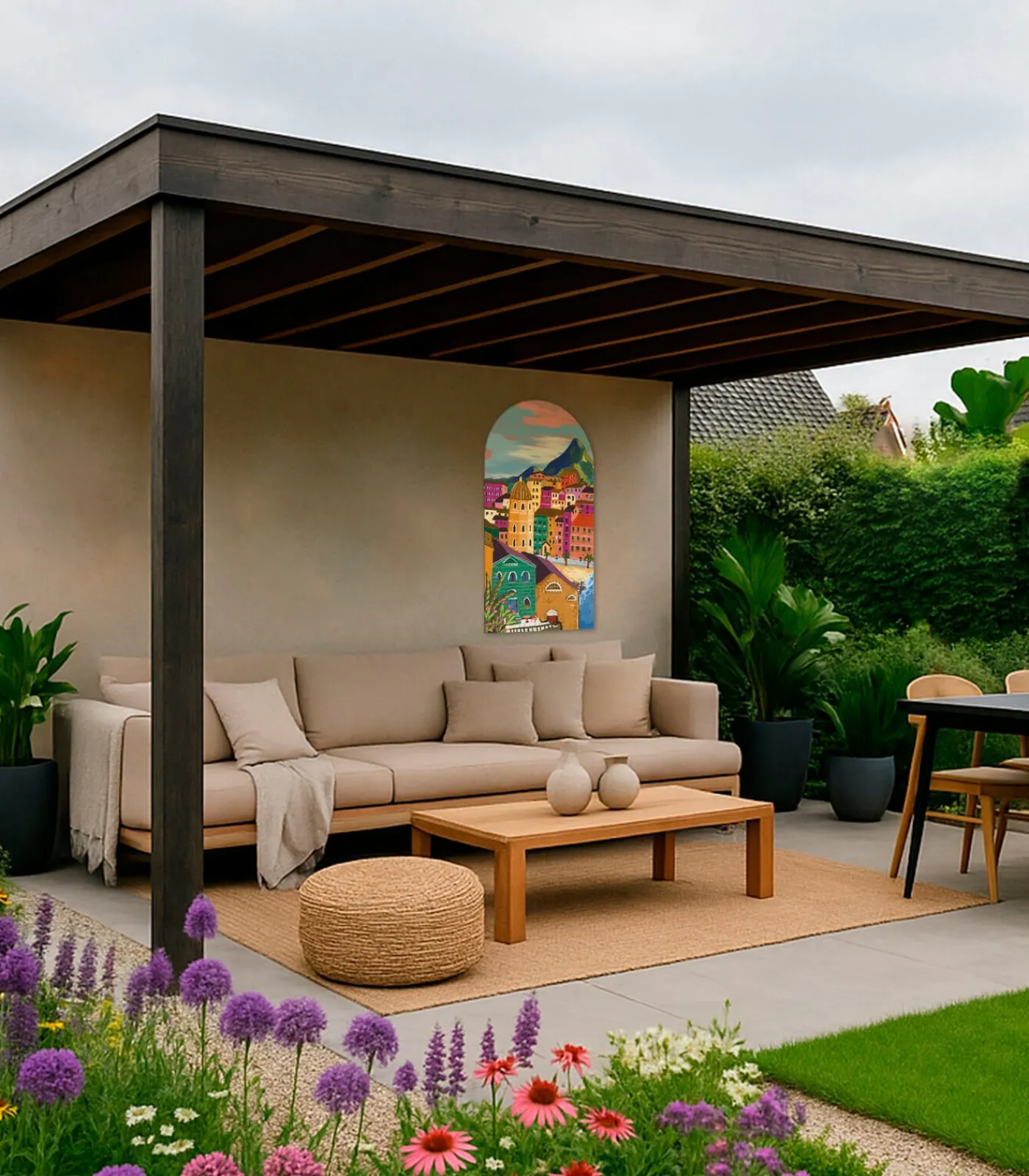 Dit unieke boogvormige canvas is met zorg ontworpen om je muren tot leven te brengen. De afgeronde vorm geeft een verrassend zachte uitstraling, terwijl de rijke kleuren en verfijnde details zorgen voor een eigentijdse twist.