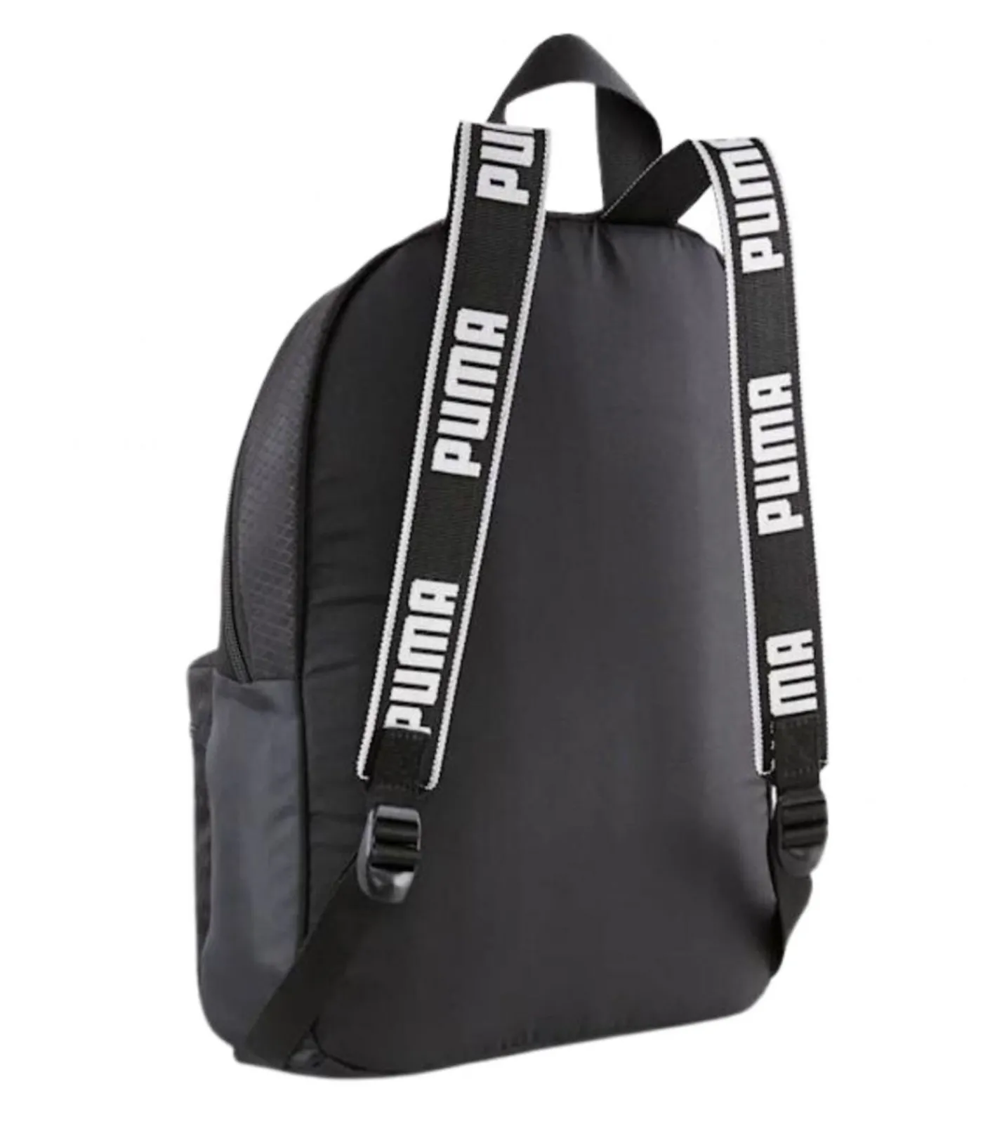 Puma CORE BASE – Zwarte ruzak met 100% poliesterd. De rucksack heeft een gereedschapspositie van 35 cm hoog en 25 cm breed, met een diepte van 12 cm en een inhoud van 12 liter. Het heeft één voorzak met rijtsluiting en twee compartimenten: één binnencompartiment en één hoofdcompartiment. De schouderriem is stevig verstelbaar, versterkt met een Puma merkrij en Merkrit trekker. De rug en basispanelen zijn geweven en waterafstotend. Het draaghandvat van dit rucksack is gemaakt van geweven band. Het is geschikt voor decoratieve doeleinden, en het ontwerp toont het Puma logo en structuur. De bevestiging is met een tweewegrits.