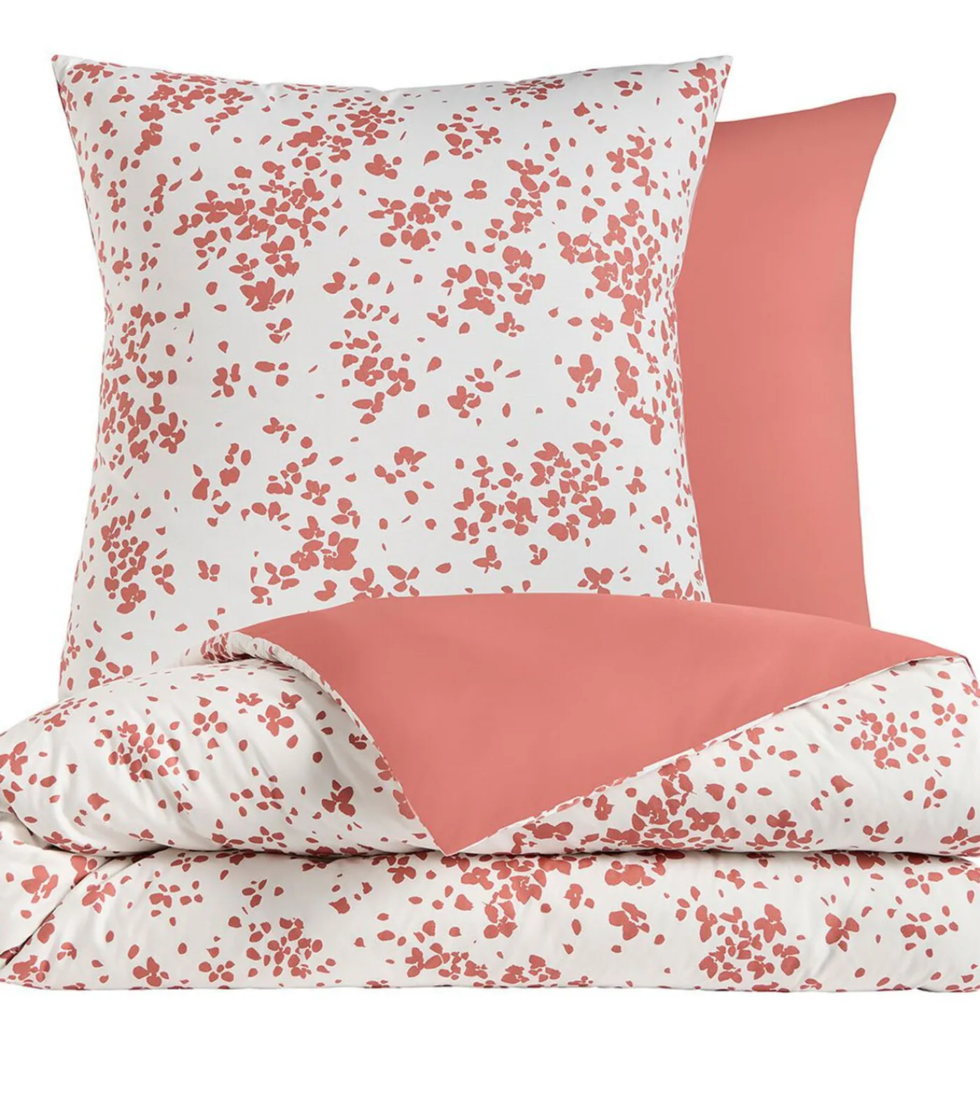 Dekbedovertrekset en kussensloop(s)Terracotta stippenprintAchterkant Vexin TerracottaAfwerking in flessenvorm – Reversibele kussenhoes