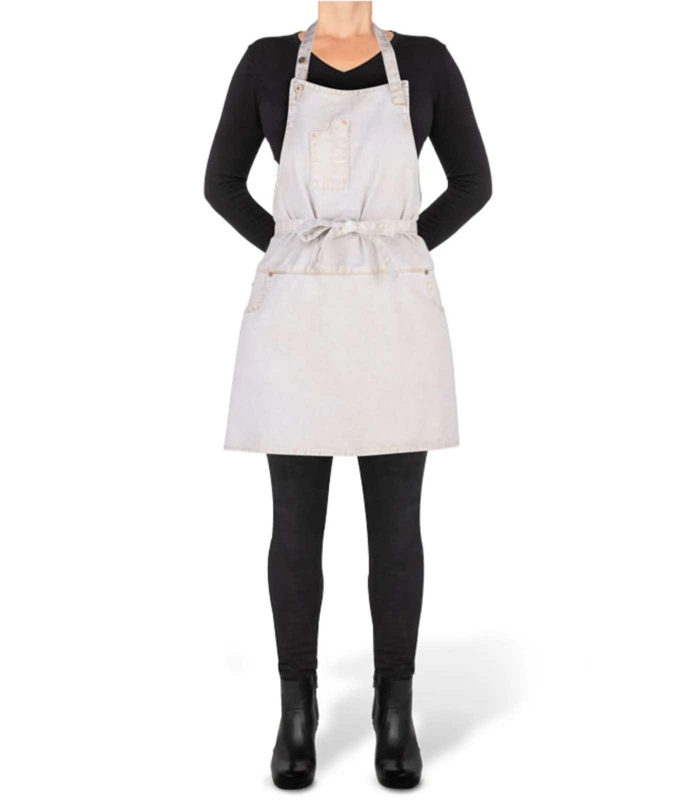 Online Denim – Hoogwaardig – Indigo jeans – Barbecue – BBQ – Keukenschort – 5 zakken – Wit/Goud Keuken- & Tafellinnen