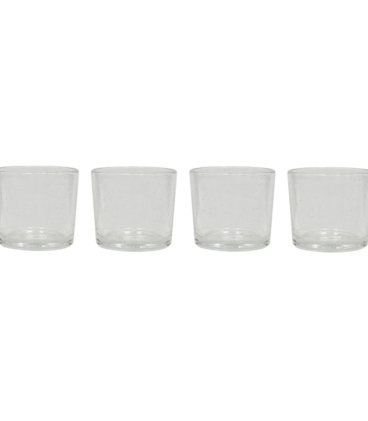 De Kuki glazen in een verpakking van 4 hebben bubbels die een vleugje eigenzinnigheid toevoegen aan hun minimalistische ontwerp. De elegante vorm combineert functionaliteit met tijdloze esthetiek, waardoor ze perfect zijn voor elke tafelsetting. Gebruik ze voor alledaagse diners of speciale gelegenheden. Omdat ze mondgeblazen zijn, varieert elk glas in grootte, wat bijdraagt aan hun unieke charme.