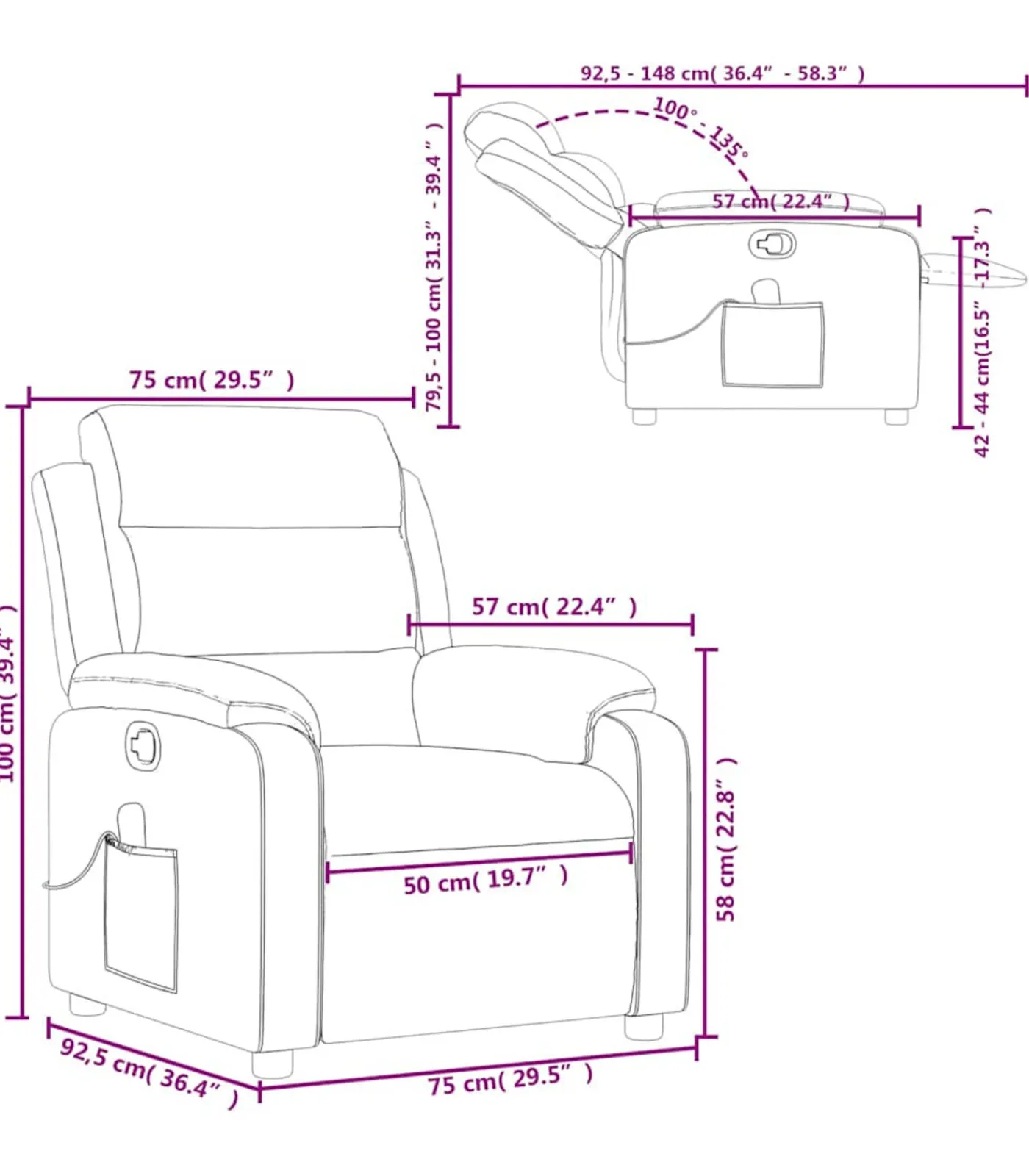Afmetingen zitpositie: 75 x 92,5 x 100 cm (B x D x H)