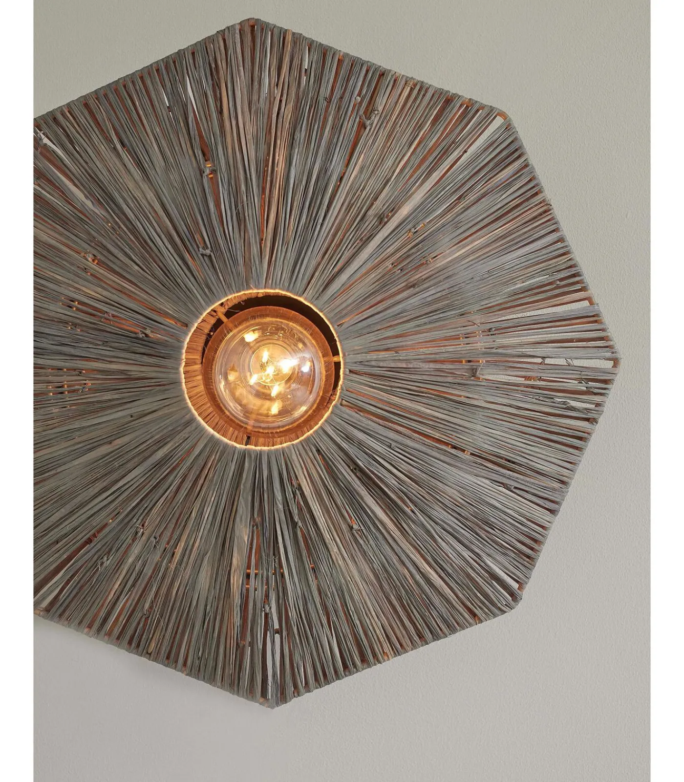 De mooie Panama plafondlamp grijs maat S van GOOD&MOJO creëert een warme, gezellige sfeer in je woonkamer, slaapkamer of eetkamer. Deze achthoekige lamp van raffia heeft een prachtige donkergrijze tint, wat zorgt voor een zacht en sfeervol licht. Raffia geeft de lamp een warme, organische uitstraling. Met een diameter van 45 cm en diepte van 8 cm, is de Panama lamp ideaal voor kleinere ruimtes of als subtiele blikvanger. De zwarte fitting voegt een trendy touch toe, perfect voor Japandi, Boho, of Scandinavian interieurs. Tip: je kunt deze lamp ook als snoerloze wandlamp gebruiken. Houd er rekening mee dat een product van natuurlijke materialen altijd uniek is en dat het uiterlijk dus kan variëren.