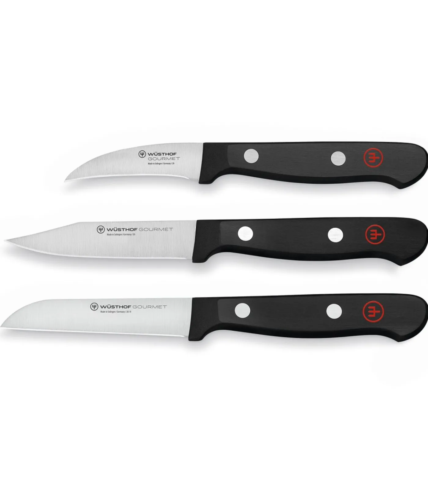 Met de Wusthof Schilmessenset Gourmet 3–Delig haal je 3 verschillende schilmesjes in huis die perfect zijn voor dagelijks gebruik! Dankzij de rechte rand heb je nauwkeurige controle bij zowel het decoreren als schillen, hakken en in blokjes snijden. De vorm van de mesjes zijn perfect voor het schillen, schoonmaken of vormgeven van fruit en groenten met een afgeronde oppervlakte. Na het gebruiken van de Wusthof Schilmessenset Gourmet 3–Delig kun je deze het beste reinigen met de hand.