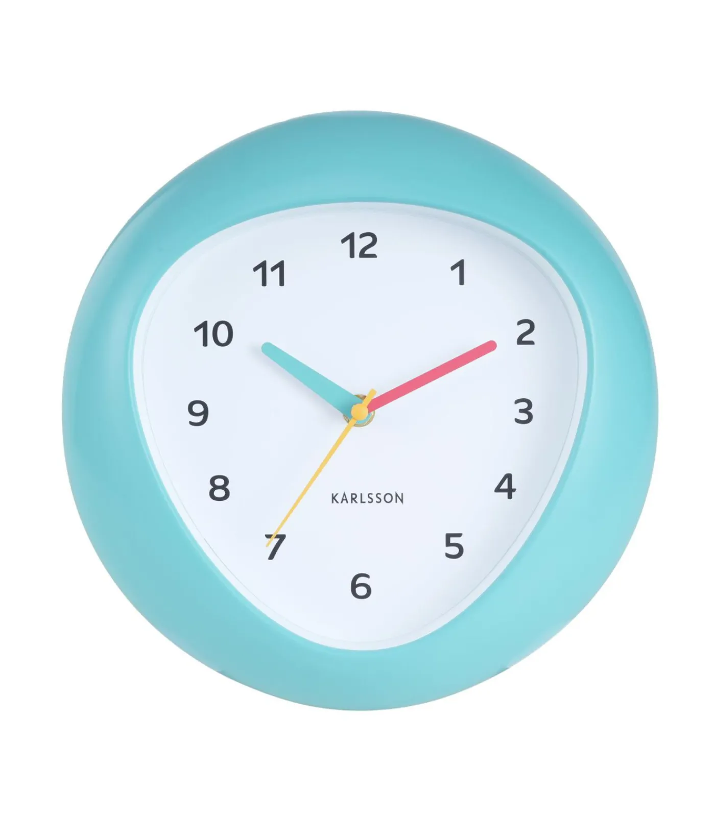 De Funky Vibes wandklok van Karlsson, ontworpen door Iris Dijkers, is een unieke blikvanger met een verrassend design. De vloeiende overgang van de driehoekige kast naar de ronde wijzerplaat geeft de klok een speelse en elegante uitstraling. Een perfect samenspel van retro en modern.