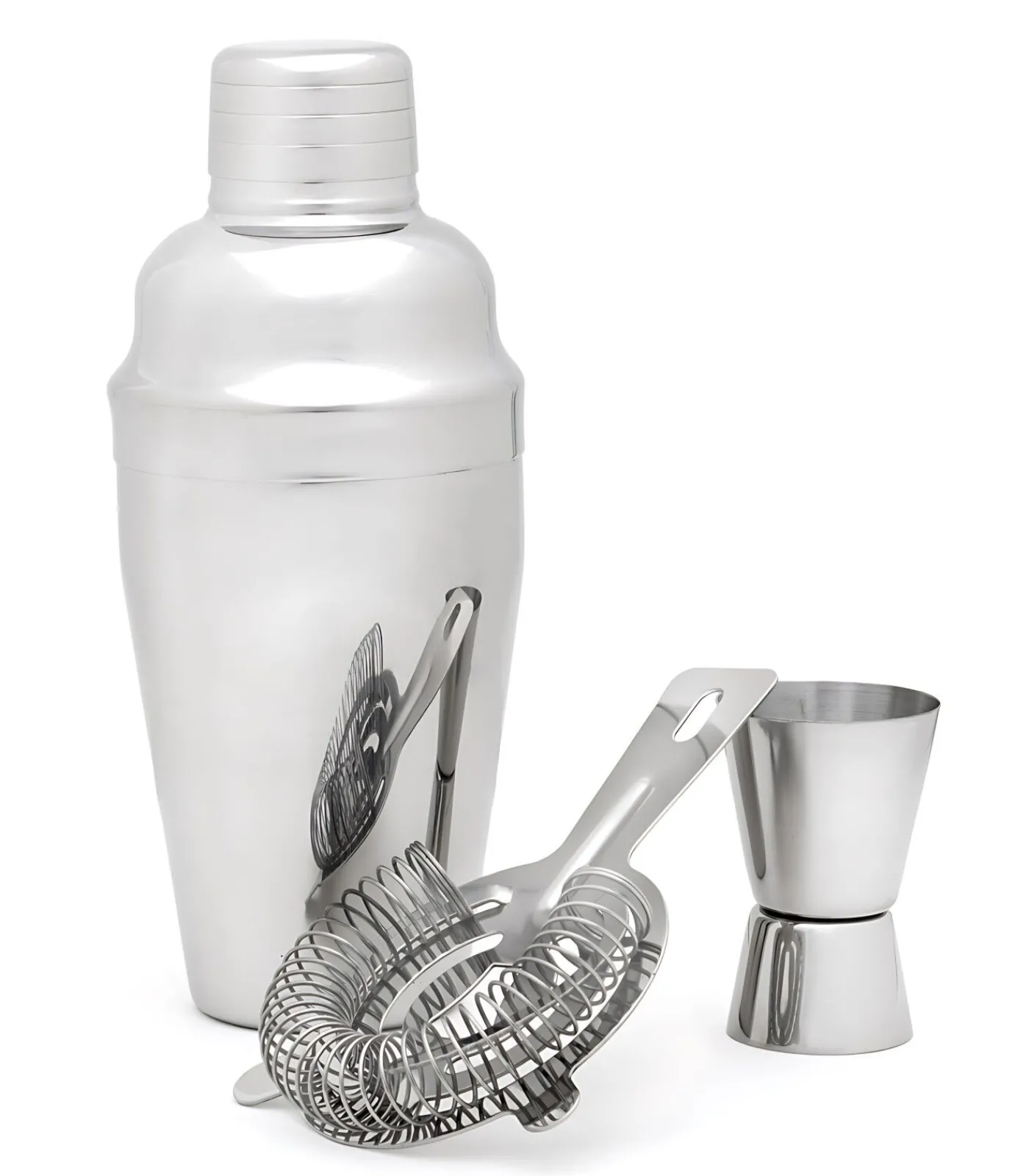 Start met cocktails shaken met deze handige barset! De barset bestaat uit een cocktailshaker, barzeef en barmaat. De cocktailshaker heeft een inhoud van 500ml en een geïntegreerde barzeef.