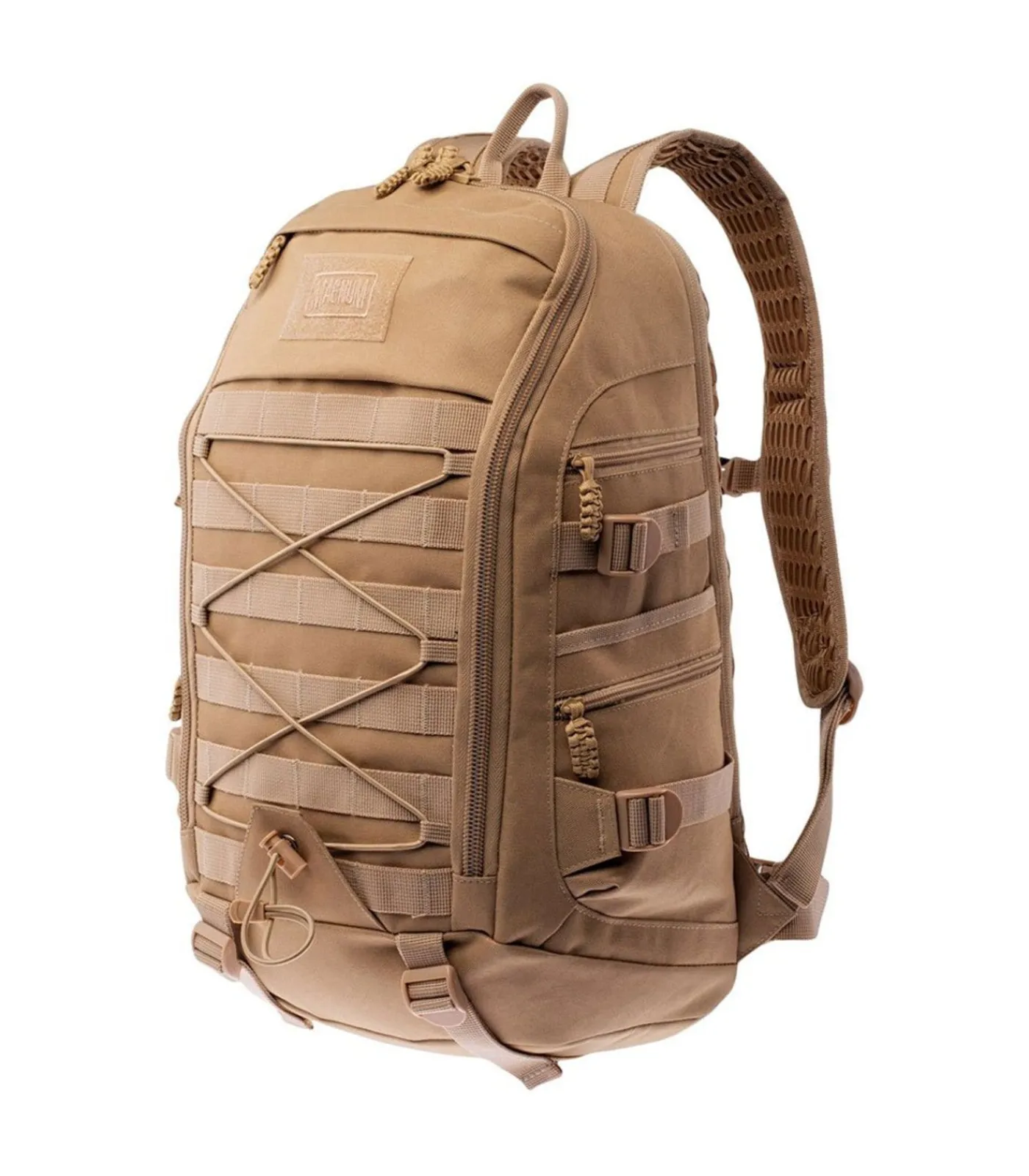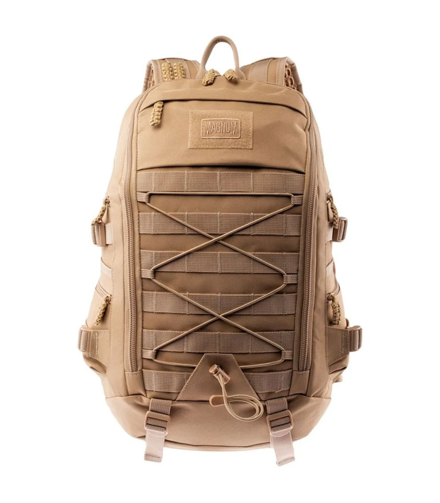 Productspecificaties: Magnum Cityox 28L Rugzak De Magnum Cityox 28L Rugzak is volledig gemaakt van polyester materialen. De rugzak is ongeveer 50 cm lang, 31 cm hoog en 18 cm breed. Opvallende ontwerpaspecten zijn onder andere het merklogo dat prominent wordt weergegeven. De rugzak sluit met SBS ritsen. Extra functies bestaan uit een verstelbare tailleband, verstelbare schouderbanden, bungee koorden, handvat, draagsysteem, laptopvak, organisatiegedeelte en PALS (Pouch Attachment Ladder System) webbing. De interne organisatie is verdeeld over één hoofdvak. Extra opbergruimte bestaat uit twee binnenvakken en vier zijvakken aan de buitenkant die veilig kunnen worden afgesloten met ritsen. De totale opslagcapaciteit is 28 liter.