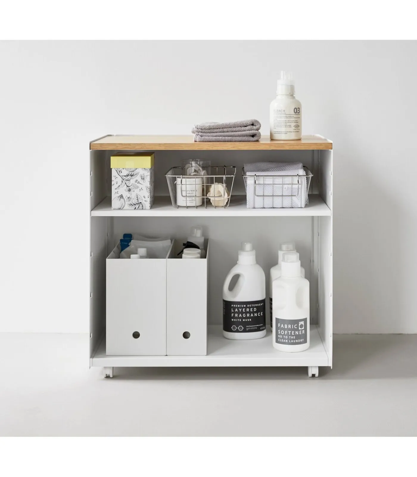 Deze praktische opbergwagen van Yamazaki biedt voldoende ruimte om huishoudelijke spullen op te bergen en je woonruimte netjes te houden. Dankzij de wielen is de wagen eenvoudig te verplaatsen, daarbij zorgt het gesloten zijpaneel voor een opgeruimde uitstraling doordat alles netjes uit het zicht blijft. De wagen heeft twee planken, waarvan de middelste in hoogte verstelbaar is, zodat de opbergruimte aangepast kan worden naar de gewenste hoogte.