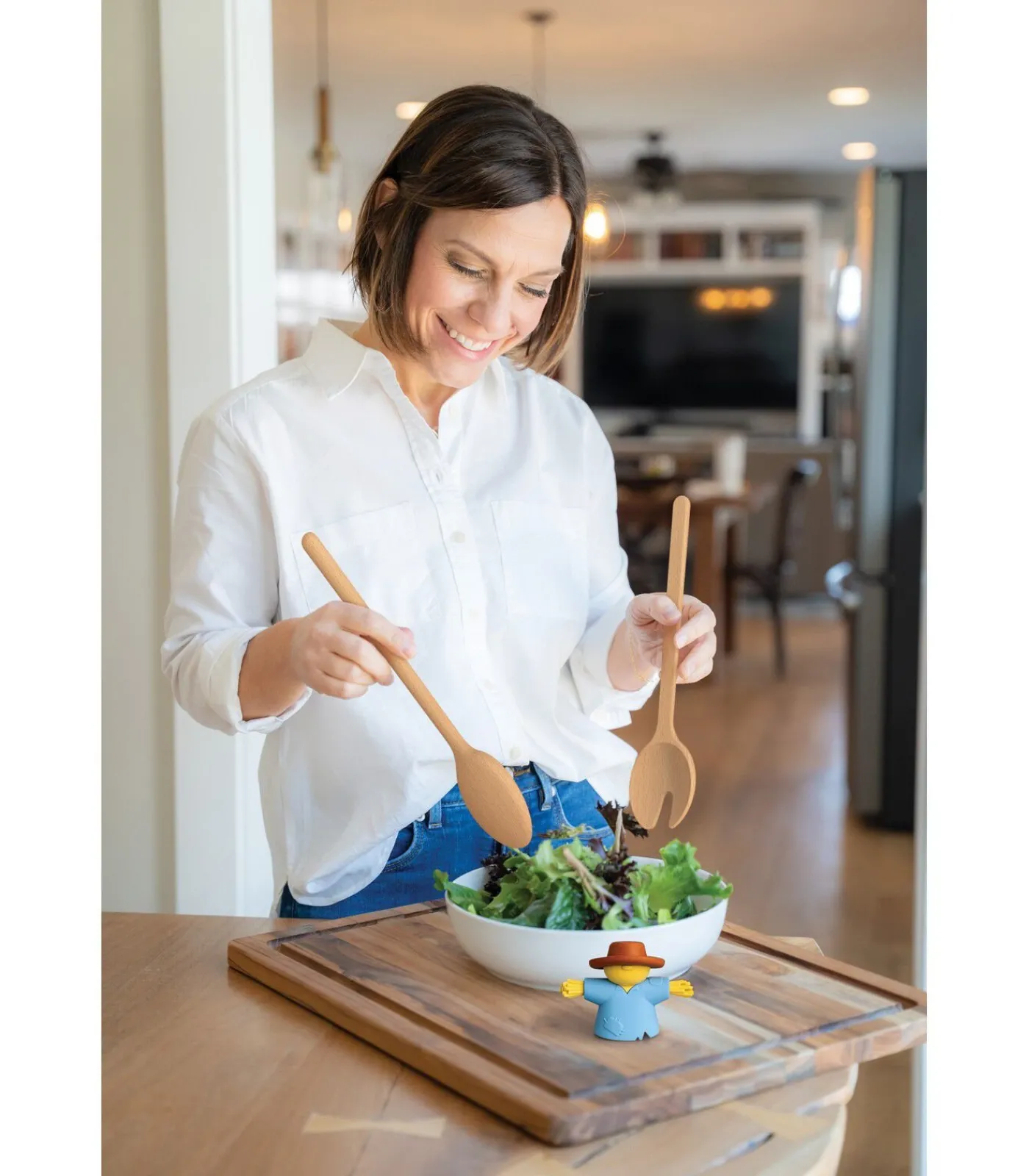 Sal is de slimme saladetang van Ototo die gemak combineert met een speels design. Het zijn twee houten lepels, maar plaats je Sal bovenop, dan veranderen ze in een handige tang. De set bestaat uit twee houten lepels en een siliconen Sal opzetstuk. Plaats je Sal bovenop, dan verandert het in een handige tang voor het serveren van salade. Het materiaal is 100% voedselveilig, BPA–vrij en bestand tegen kokend water. Na gebruik kan Sal gewoon in de vaatwasser, terwijl de houten lepels met de hand schoongemaakt worden.