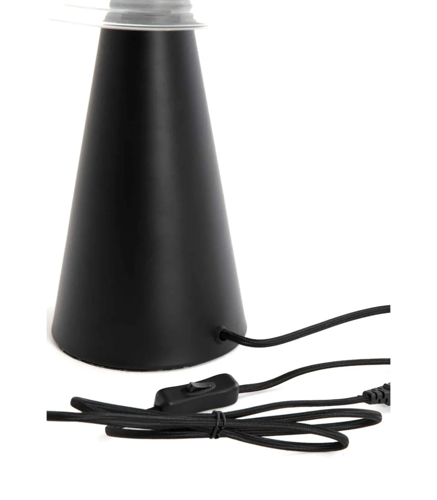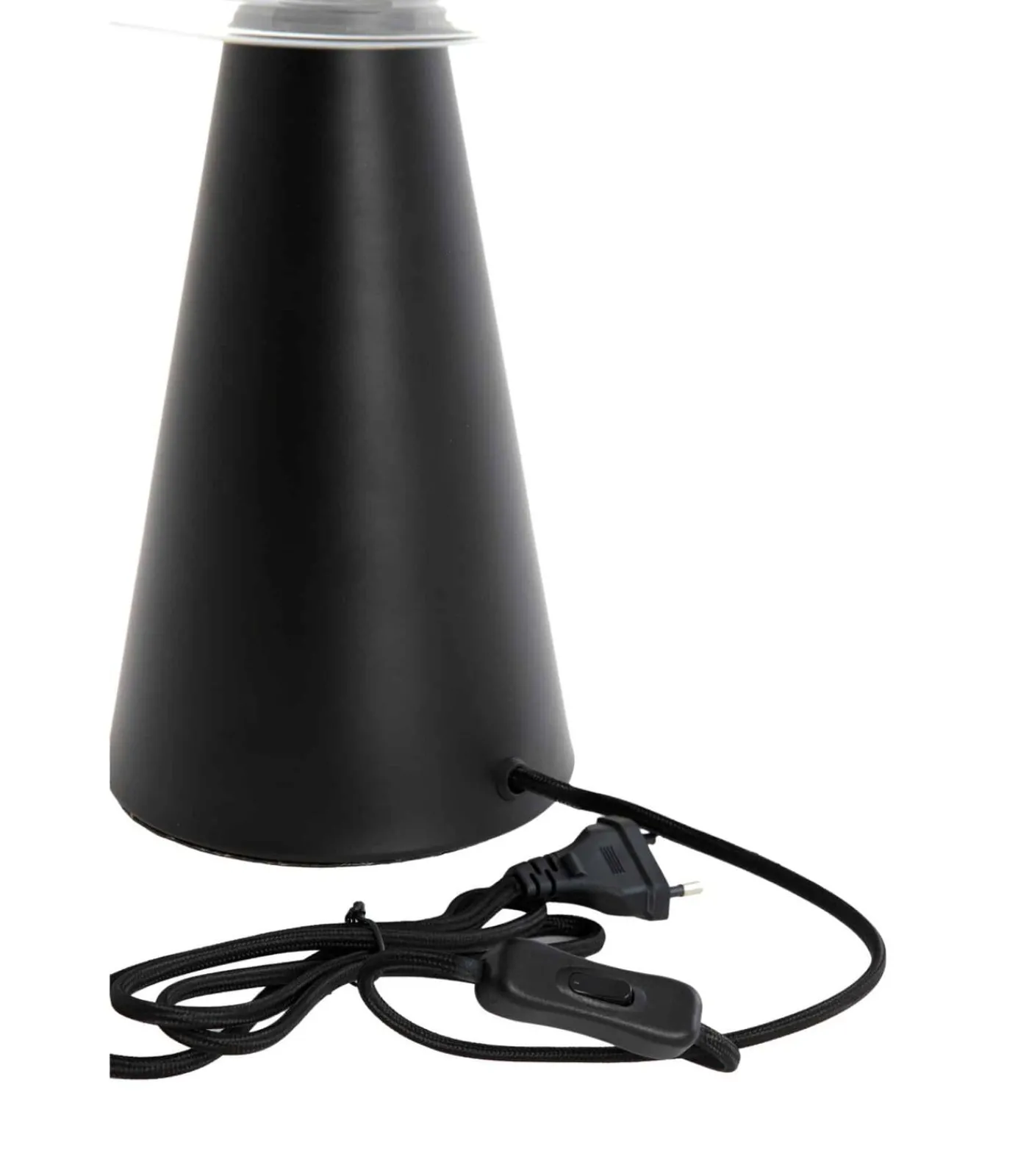 Tafellamp Mueda heeft een leuke paddenstoel vorm en is door de glazen kap enorm sfeervol. De voet heeft een mat zwarte kleur waardoor de lamp een moderne uitstraling heeft. In een woonkamer, slaapkamer of op een bureau komt deze tafellamp helemaal tot zijn recht. De afmeting van de tafellamp is Ø30×43 cm.