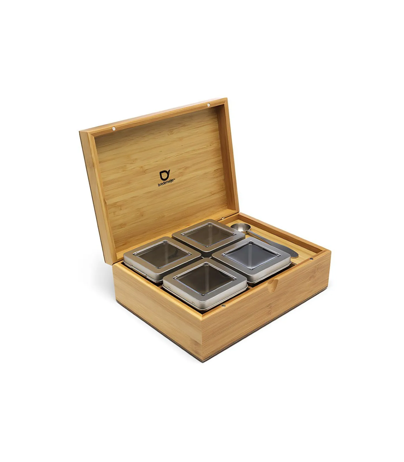 Outlet Theedoos Bamboe met 4 blikjes en theemaatlepel Koffie & Thee Maken