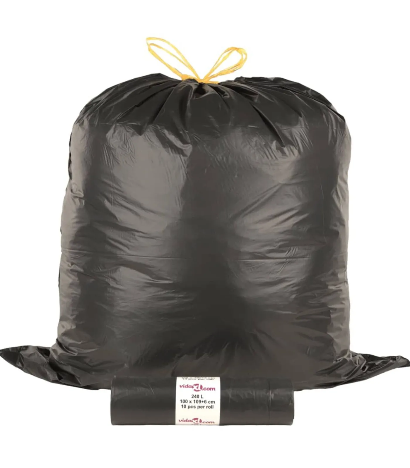 Outlet Vuilniszakken met trekkoorden 150 st 240 l zwart Manden En Bakken