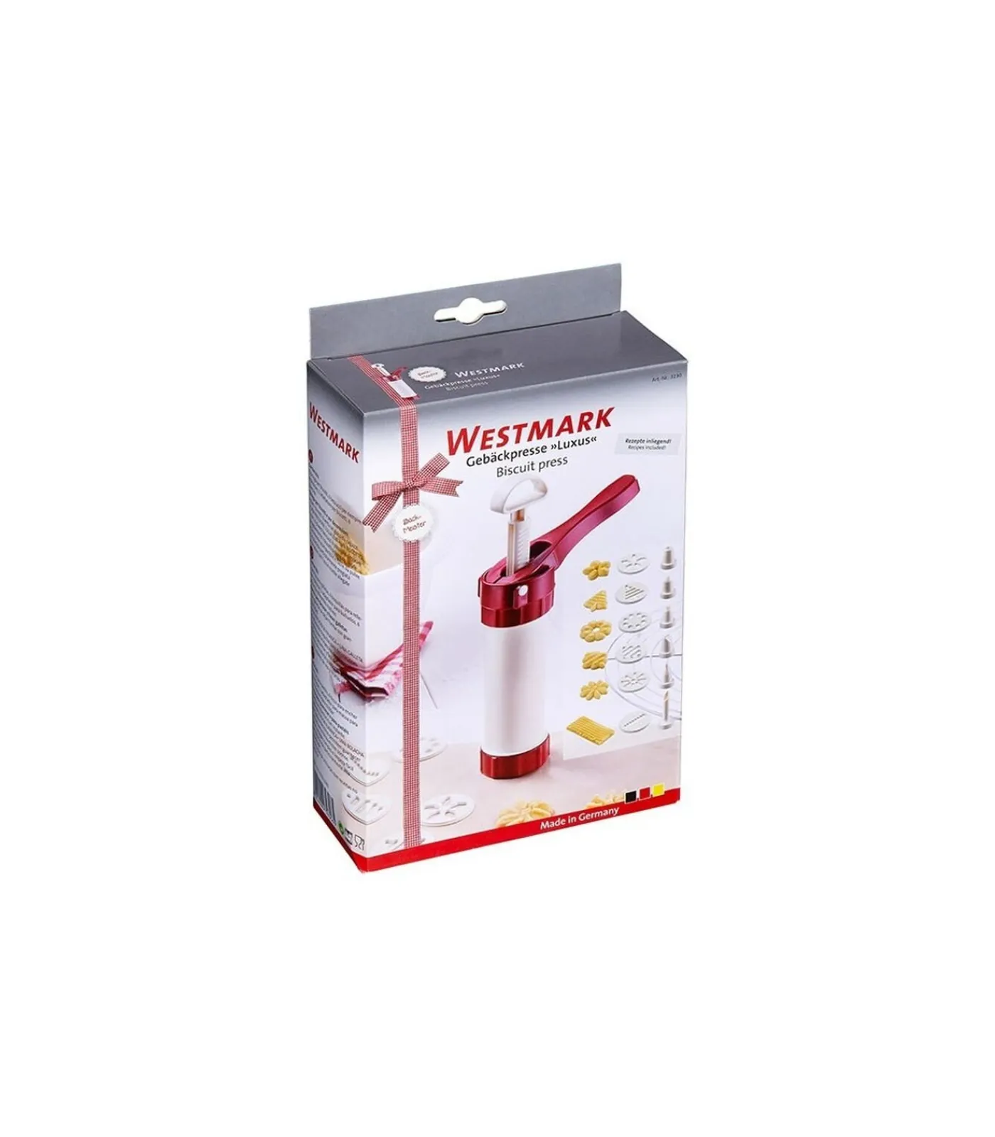Deze deegspuit is perfect voor het maken van koekjes. Je krijgt er 6 verschillende mondstukken, 6 verschillende schijfjes en een adapter bij. Ideaal voor kinderen dus! Door het handige bedieningsmechanisme kun je met één hand garneren. De deegspuit heeft een inhoud van 22.5 cl en is vaatwasserbestendig.