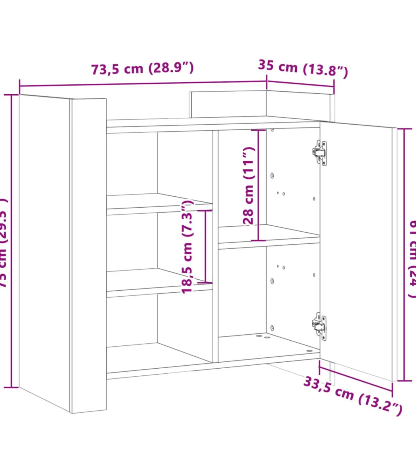 Voldoende opbergruimte: het dressoir biedt voldoende ruimte om verschillende dagelijkse benodigdheden geordend en binnen handbereik op te bergen.