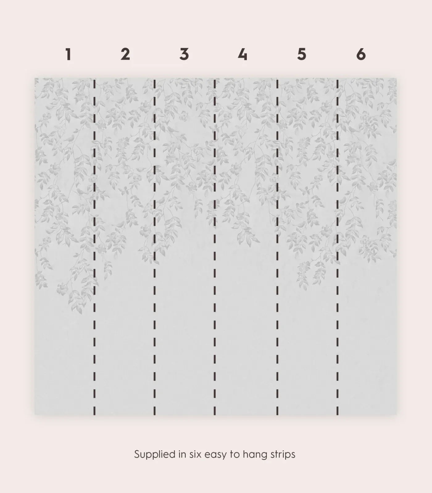Laura Ashley fotobehang wordt geleverd op een rol met 6 banen.