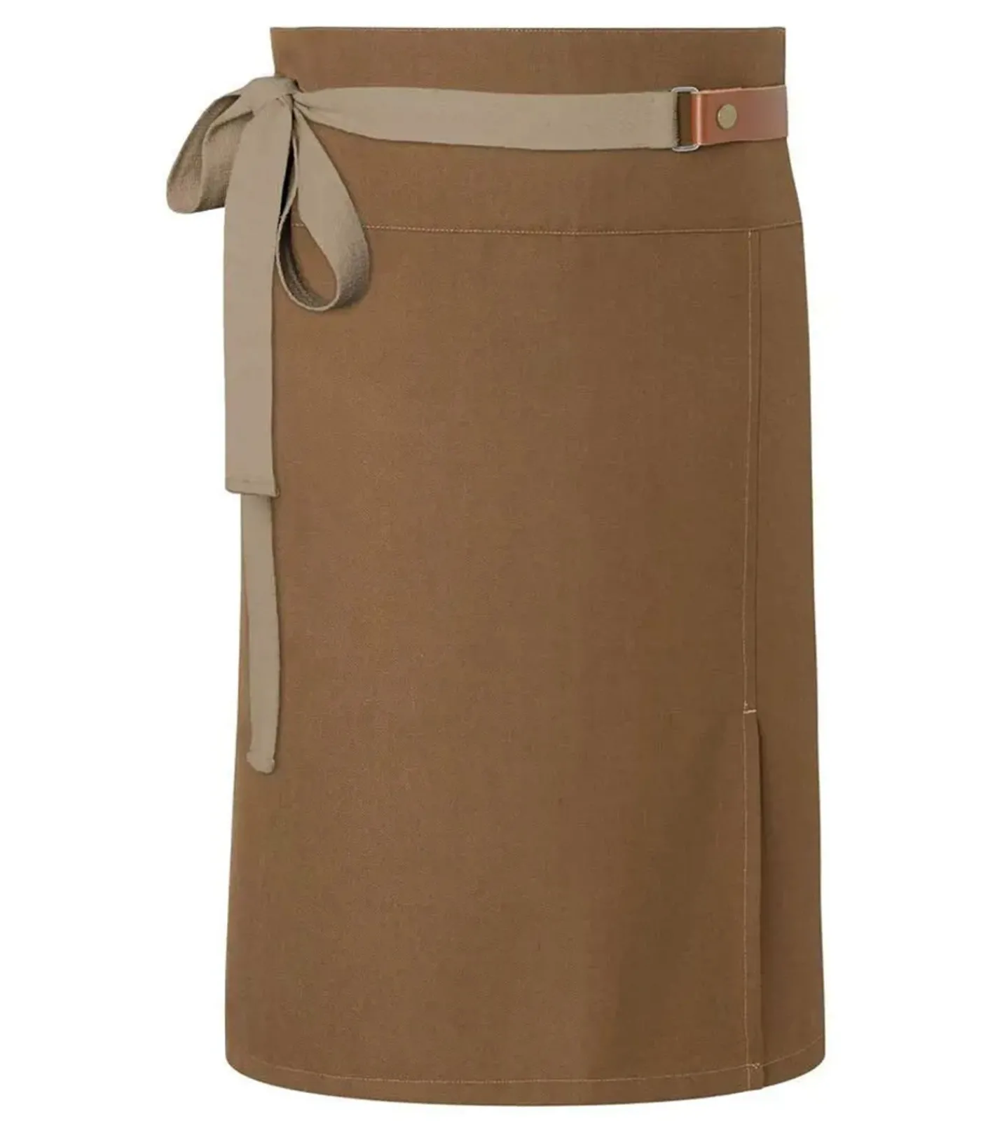 Karlowsky, GREEN–GENERATION – Aubergine. Dit is een duurzame kledingstuk gemaakt van 65% hergebruikt polyester en 35% katoen. Het stof heeft een keperbinding en is breed 110 cm en lang 65 cm. De zakken zijn opgestikte zakken. Het heeft een kleurecht, afneembare riem, is onderhoudsvriendelijk, vertoont leer details en split aan de voorzijde. De sluiting is via drukknoop en tailleband. Het ontwerp is eenvoudig. Het gewicht is 215 gsm. Het is Oeko–Tex Standard 100 Gecertificeerd, wat betekent dat het volgens de hoogste veiligheidseisen voor textiel geproduceerd is. De verpakking is een polybag en het is een kort stuk van kleding.