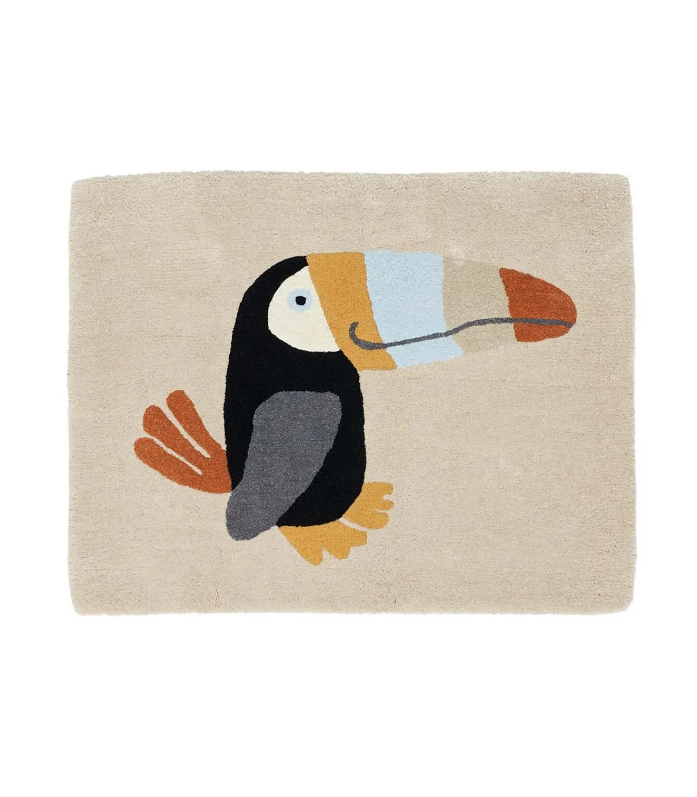 Het toekan vloerkleed is een gezellige en speelse toevoeging aan de kamer van je kind, ontworpen om kleine voetjes warm te houden. Dit vloerkleed is een leuk en levendig accent voor de kinderkamer en voegt een vleugje eigenzinnigheid toe aan hun omgeving. Het is gemaakt van een mengsel van 80% wol en 20% katoen en biedt zowel zachtheid als duurzaamheid. Om zijn charme te behouden, is het aan te raden alleen te stofzuigen en ter plekke schoon te maken.