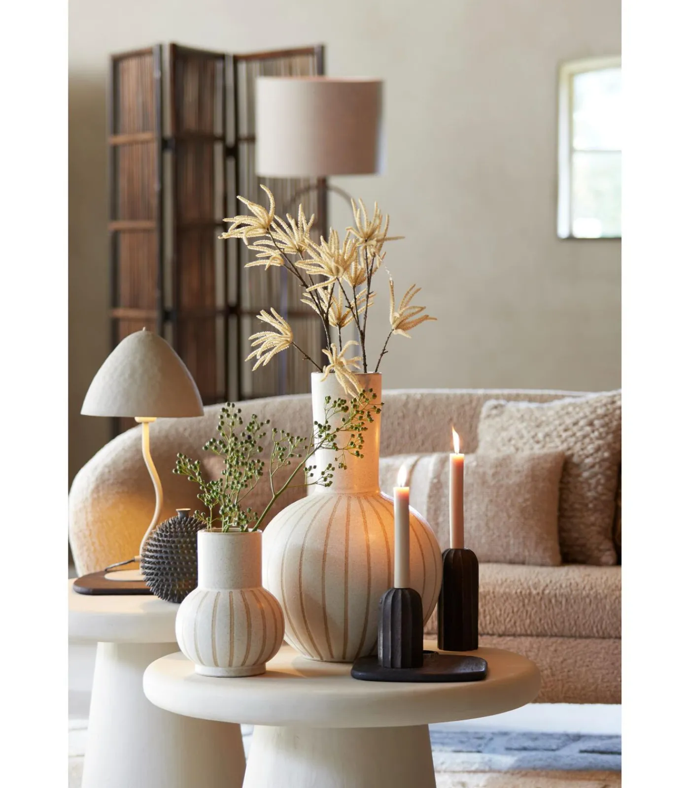 Deze prachtige bolvormige keramieken bloemenvaas combineert eenvoud met verfijning en brengt een vleugje natuurlijke elegantie in je woonruimte. Of je hem nu solo plaatst in de woonkamer of slaapkamer of combineert met andere vazen en accessoires, hij voegt direct sfeer toe. Met zijn organische vorm en subtiele kleurencombinatie straalt deze decoratieve bloemenvaas rust en elegantie uit. De lijnen geven deze vaas een unieke en ambachtelijke uitstraling, perfect voor liefhebbers van Scandinavisch, bohemian of modern design.