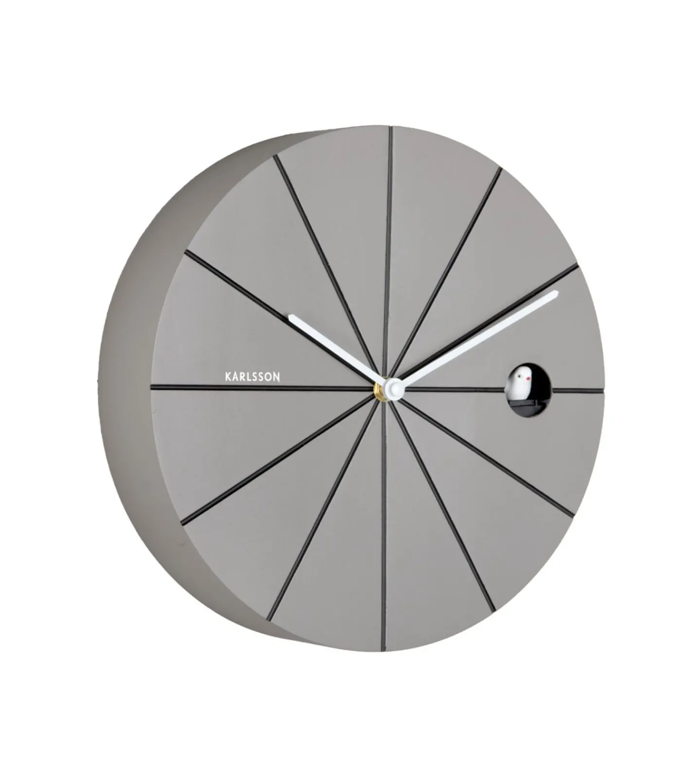 Een moderne blikvanger met een verrassende twist. De Destacado Cuckoo van Karlsson combineert strak design met een vleugje speelsheid. Achter het geometrische front schuilt een klassiek element: een vogel die op gezette tijden naar buiten komt en een zacht geluid laat horen. De wijzerplaat is verdeeld in subtiele lijnen die zorgen voor een grafisch effect, terwijl het totaalontwerp minimalistisch en stijlvol blijft. Een eigentijdse interpretatie van de traditionele koekoeksklok.
