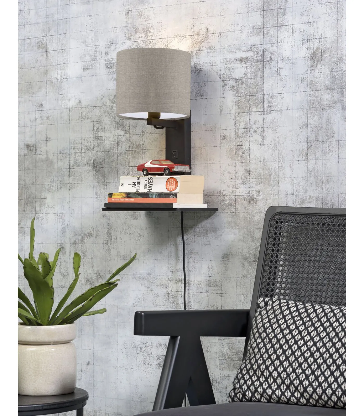 De Andes wandlamp met zwarte boekenplank is een sierlijke en subtiele toevoeging naast je bank, bed of leesstoel. De taupe linnen kap zorgt voor een subtiele verlichting die prachtig harmonieert met je interieur en donkere hoekjes verlicht. Met afmetingen van 19x24x36cm is hij bijzonder handig naast je bed of zelfs in de hal om sleutels op te bergen. De lamp combineert functionaliteit met stijl, waardoor hij een charmant en praktisch accent in je woonkamer creëert.
