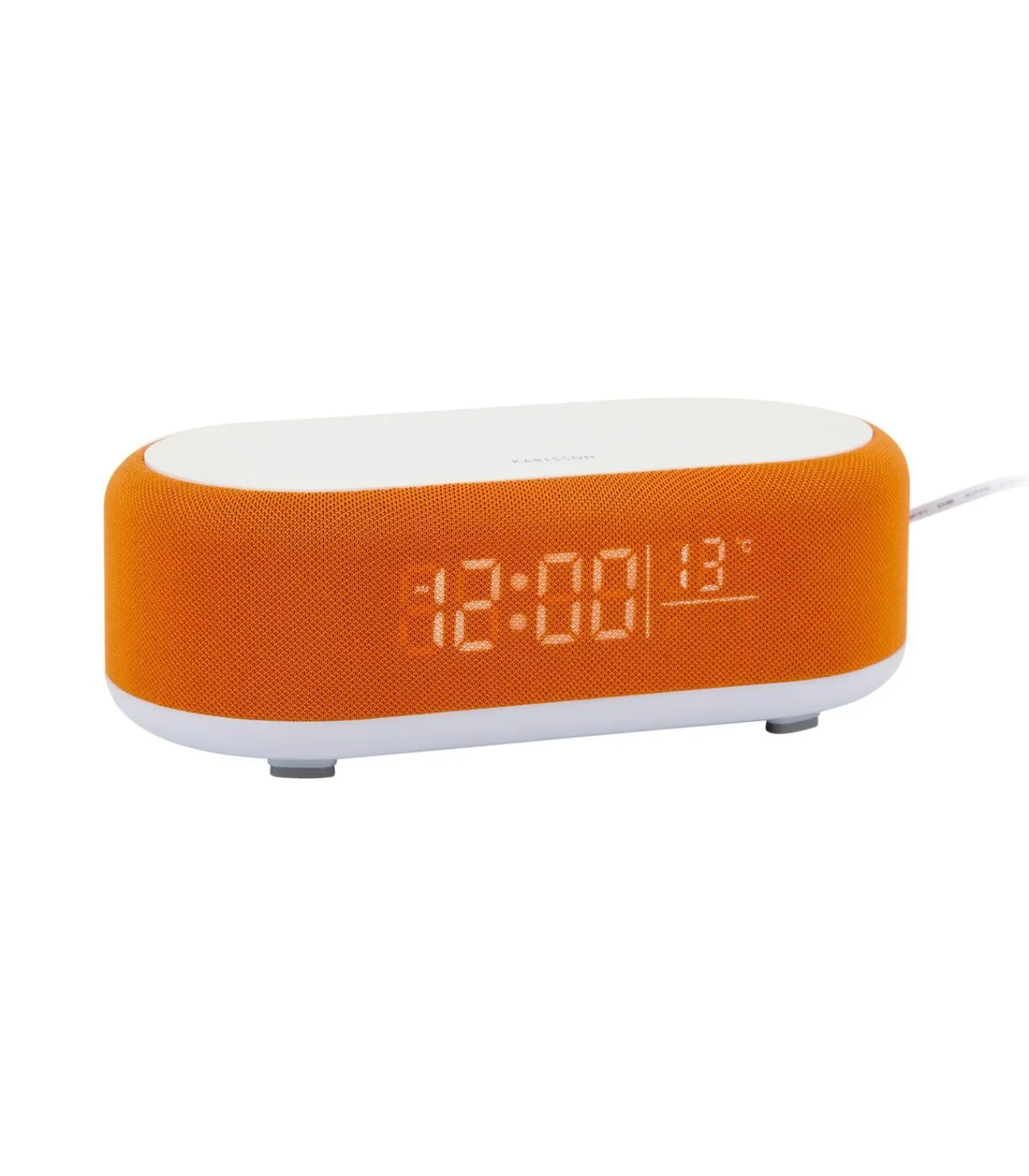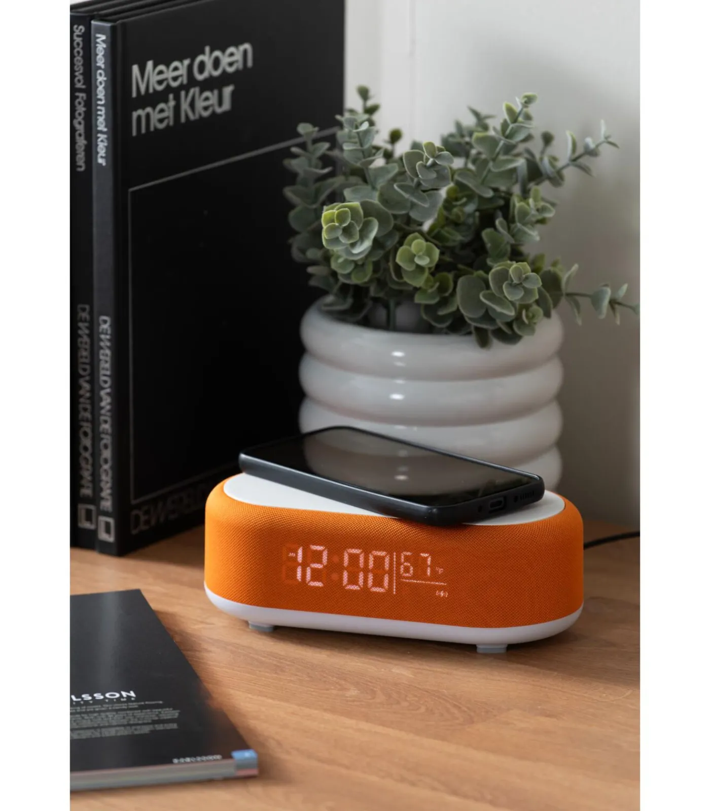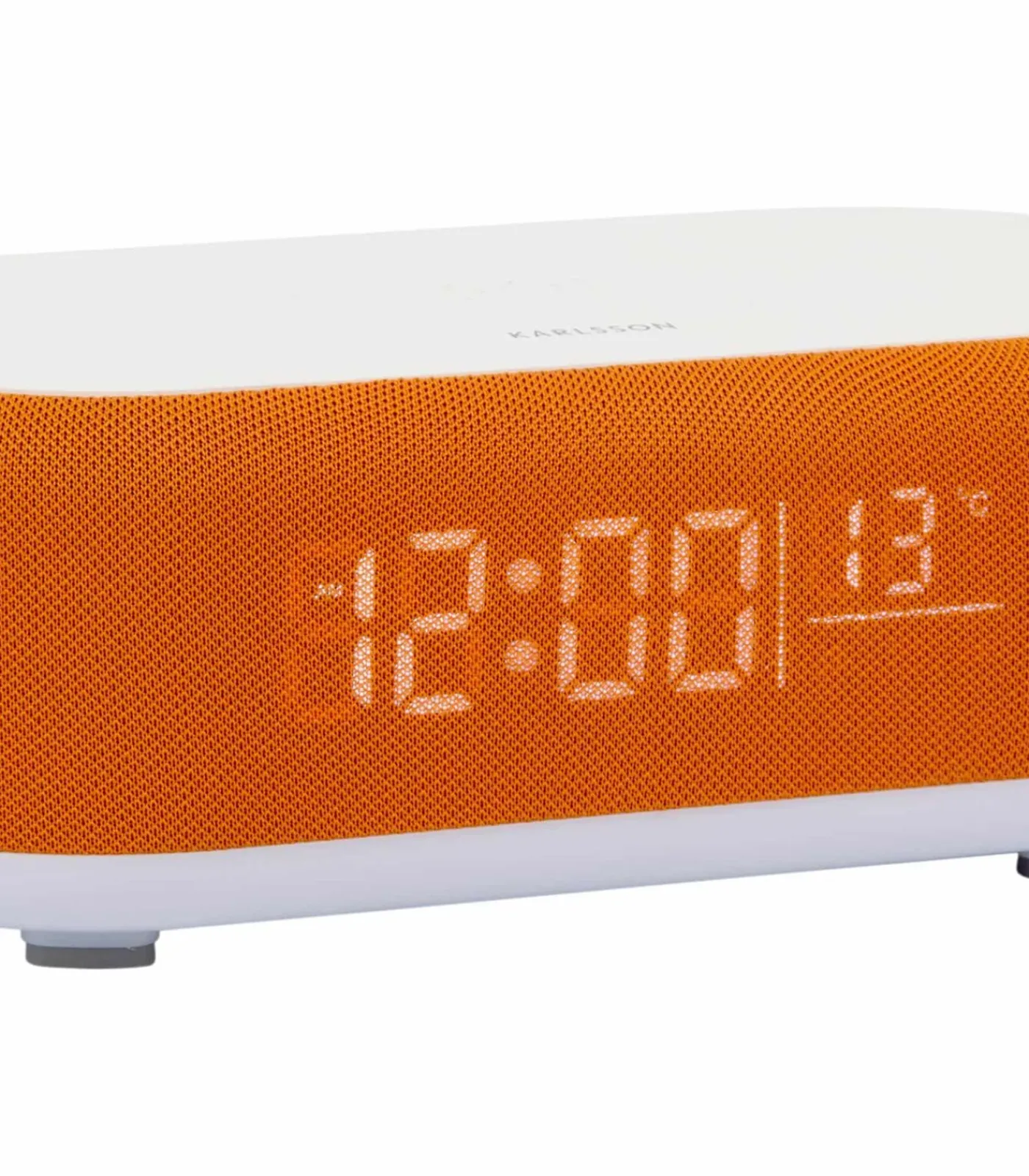 De Vogue wekker van Karlsson combineert design en functionaliteit in één. Met zijn ovale vorm en trendy display met gekleurd stof is hij een echte blikvanger. Maar dat is niet alles, deze wekker is ook een draadloze oplader! Leg je telefoon eenvoudig bovenop en start je dag met een volle batterij. Daarnaast beschikt hij over Bluetooth, zodat je jouw favoriete muziek of wekgeluid kunt afspelen. Een must–have voor de moderne slaapkamer!