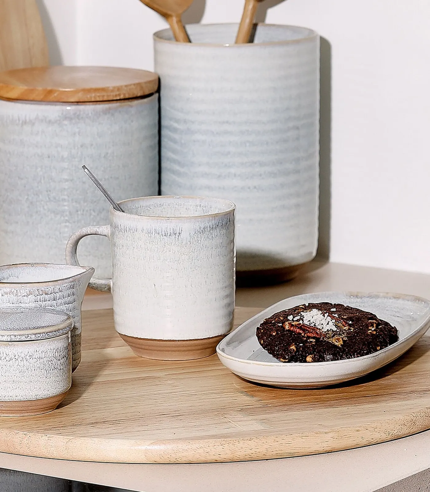 Ervaar de tijdloze pracht van Cameo, een verfijnde serviescollectie in een licht beige tint met zachte, subtiele nuances. De combinatie van een glanzende, reactieve glazuurlaag en een matte aardewerken onderzijde creëert een stijlvol contrast. Met een uitgebreid aanbod – van voorraadpotten tot schalen – biedt deze collectie alles voor een complete, praktische en visueel aantrekkelijke tafelervaring.