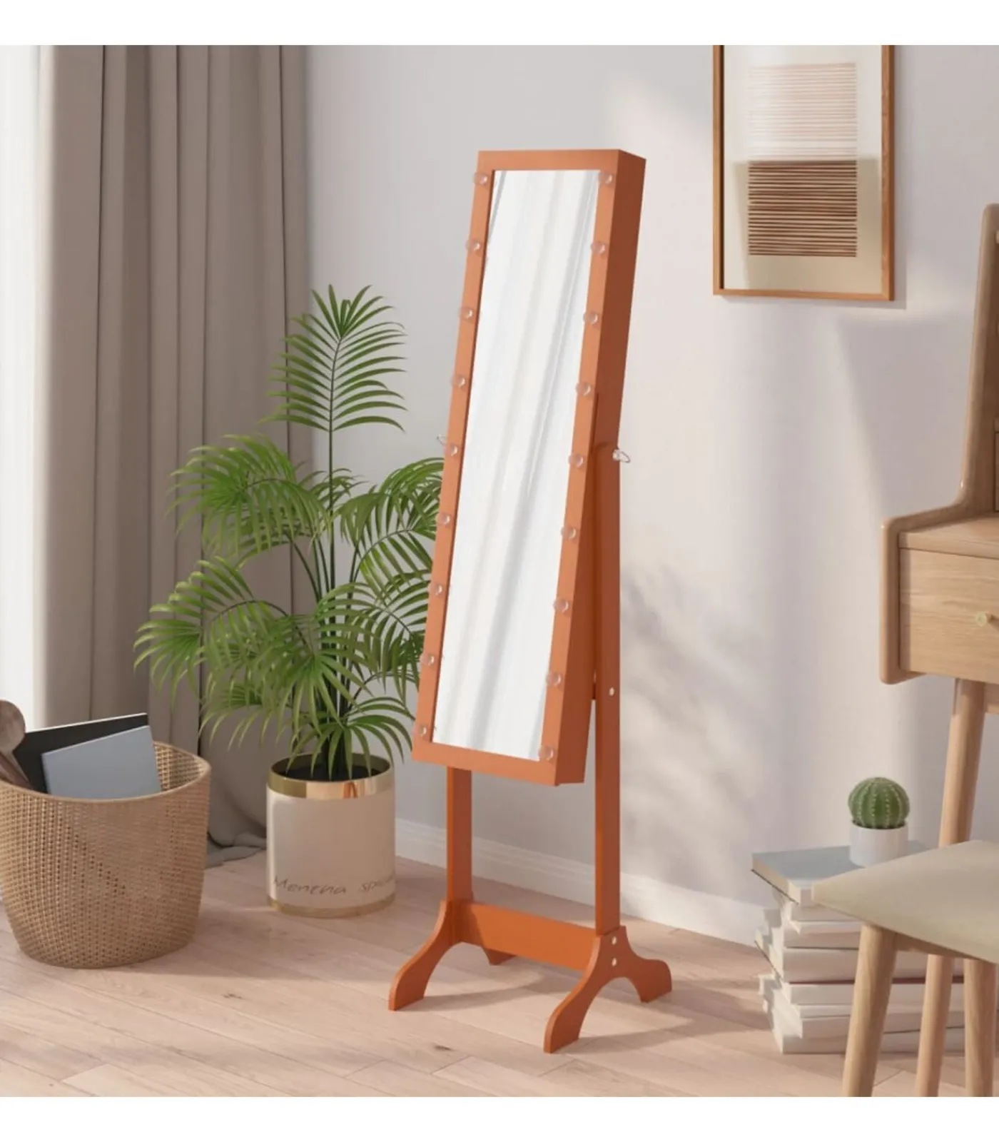 Deze vrijstaande passpiegel met LED–verlichting heeft een elegant ontwerp en is een geweldige, decoratieve toevoeging aan je gang, slaapkamer, kleedkamer, garderobe, enz.