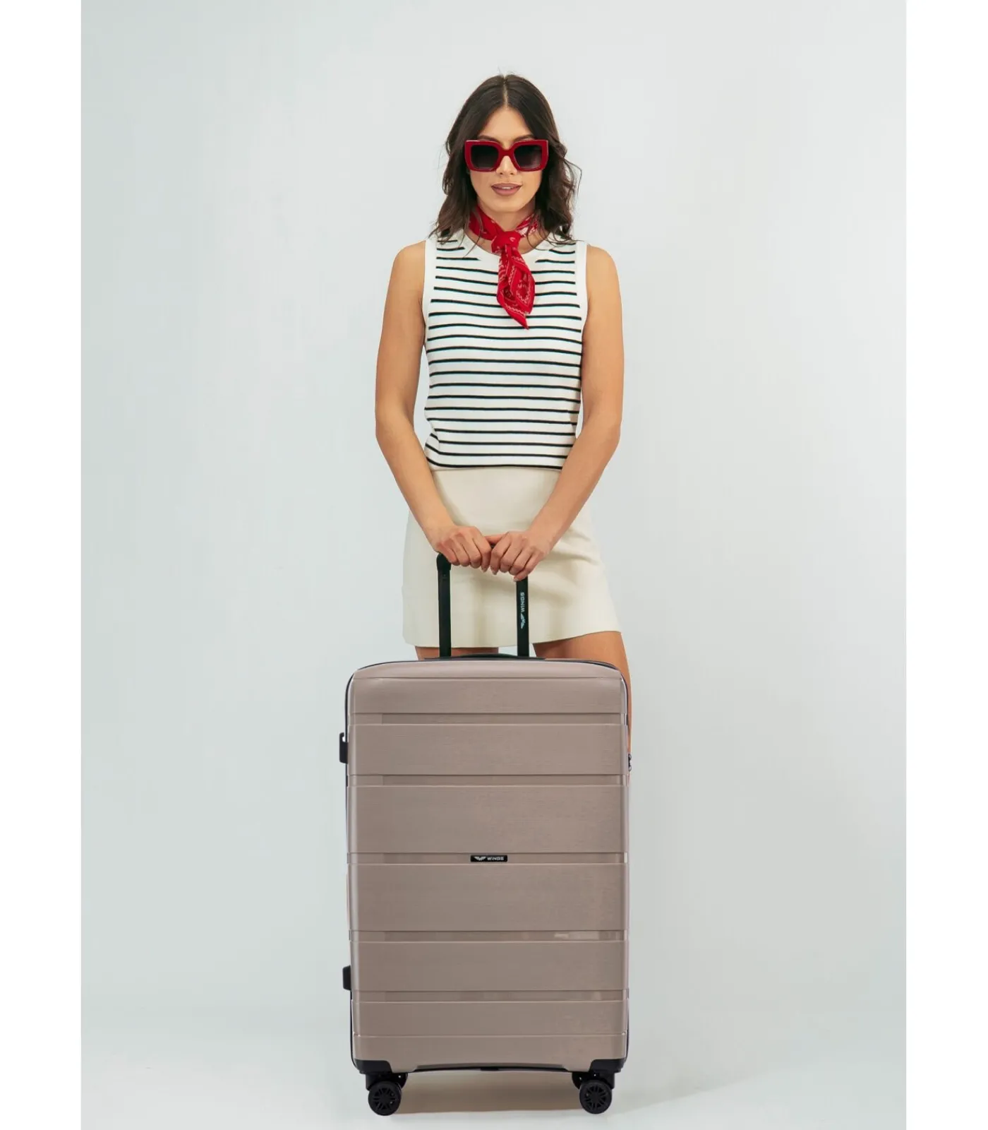 De WINGS HAWFINCH koffer in maat L is de ideale keuze voor langere reizen waarbij veel opbergruimte nodig is. Met een royaal volume van ca. 97 liter en afmetingen van ca. 75 × 50 × 30 cm biedt de koffer genoeg ruimte voor alles wat je nodig hebt tijdens een vakantie of zakenreis. De maattolerantie is +/– 2 cm.Deze koffer is gemaakt van slijtvast polypropyleen en overtuigt door zijn hoge slagvastheid en lage gewicht van slechts ca. 4 kg. De elegante oppervlaktestructuur in combinatie met geraffineerde details zorgt voor een moderne en stijlvolle uitstraling. Vier dubbelgelagerde zwenkwielen zorgen voor stil en wendbaar manoeuvreren in alle richtingen. De uitschuifbare telescoopstang kan flexibel worden ingesteld op de gewenste hoogte en zorgt voor een comfortabele rit.Binnenin maakt de koffer indruk met zijn praktische indeling in twee grote compartimenten: het ene kan worden afgesloten met een rits, het andere is voorzien van elastische kruisbanden. Een extra ritsvak zorgt voor nog meer overzicht en organisatie. De binnenbekleding is zwart, discreet gelabeld en onderstreept de hoogwaardige indruk van de serie.Om je spullen te beschermen is er een geïntegreerd cijferslot om ongeoorloofde toegang te voorkomen. De haak aan de zijkant maakt het gemakkelijk om kleine tassen of accessoires aan de buitenkant van de koffer te bevestigen – een praktisch detail voor frequente reizigers. De WINGS HAWFINCH koffer in maat L is daarom een robuuste, elegante en veelzijdige metgezel voor verre reizen en langere verblijven.