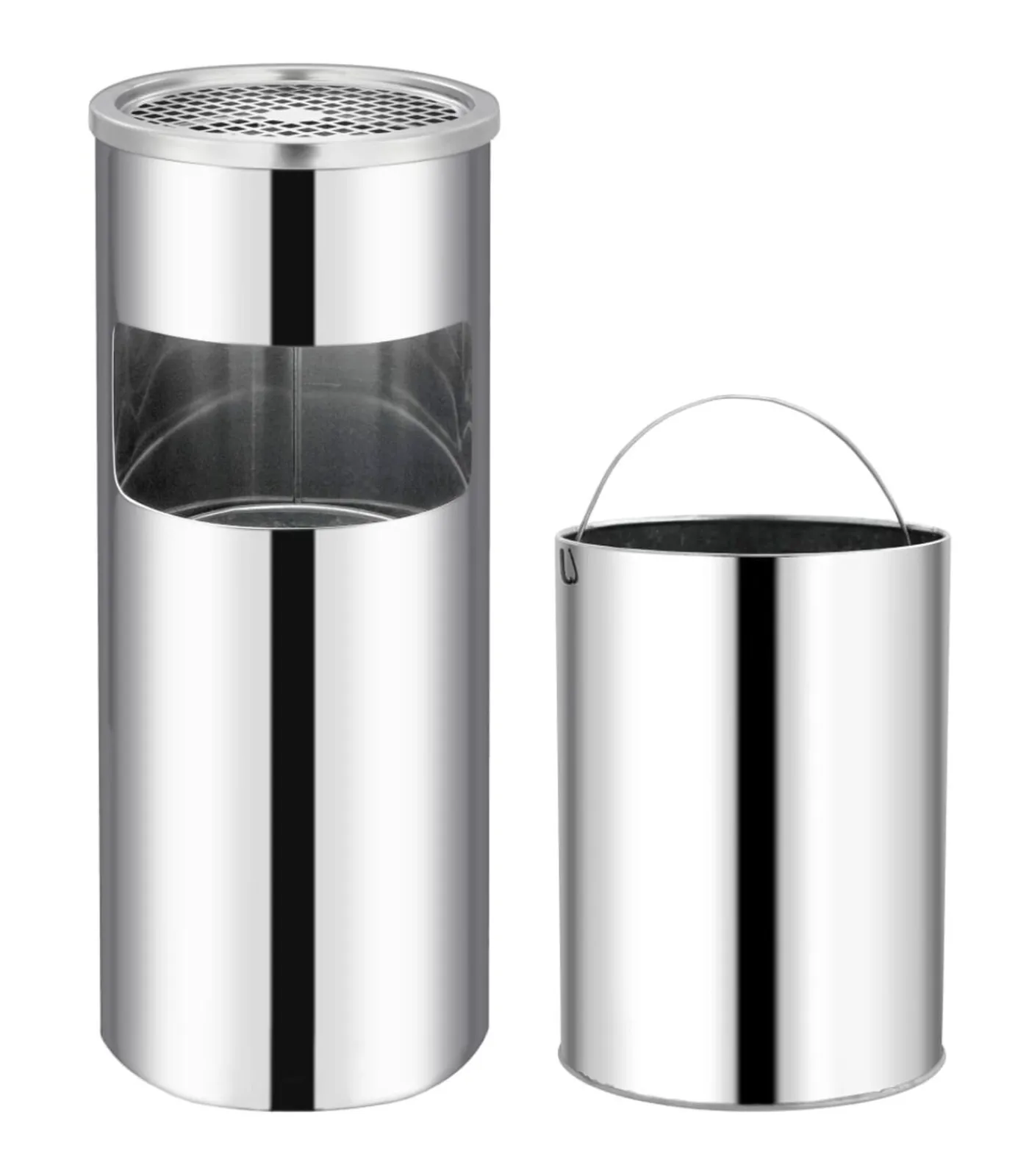 Onze hoogwaardige asbak/prullenbak wordt gekenmerkt door de elegantie van roestvrij staal en een asbakontwerp. Hij heeft niet alleen een geavanceerd ontwerp, maar is ook zeer functioneel. Onze afvalcontainer heeft een grote afvalbak met daarboven een asbak. Hij kan zowel binnen als buiten worden gebruikt en is dus ideaal voor hotels, restaurants, kantoren, enz.