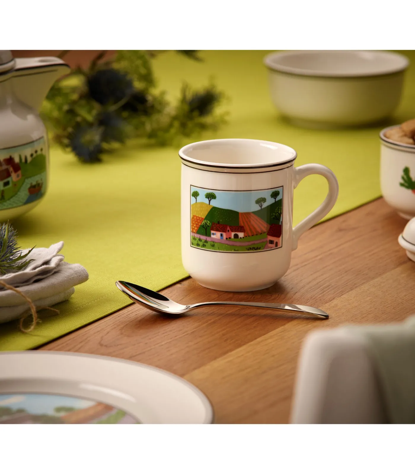 Dorpsmotieven en romantische boerderijsferen in pittoreske landschappen: de collectie Design Naif van Villeroy & Boch overtuigt met liefdevol vormgegeven scènes uit het landelijke leven. De individuele serviesartikelen zijn individuele sieraden op tafel. De speelse, eenvoudige decoratie in de stijl van de naïeve schilderkunst is van de hand van de Corsicaanse kunstenaar Gérard Laplau. Sinds 1748 produceert het traditierijke bedrijf Villeroy & Boch voor de hoogste eisen. Uit deze klassiek elegante beker kunt u tijdens korte pauzes in het dagelijks leven genieten van heerlijke koffiespecialiteiten. Het ontwerp is stijlvol en tijdloos. Van pauzes genieten met Villeroy & Boch. Natuurlijk geschikt voor de vaatwasser en magnetron.