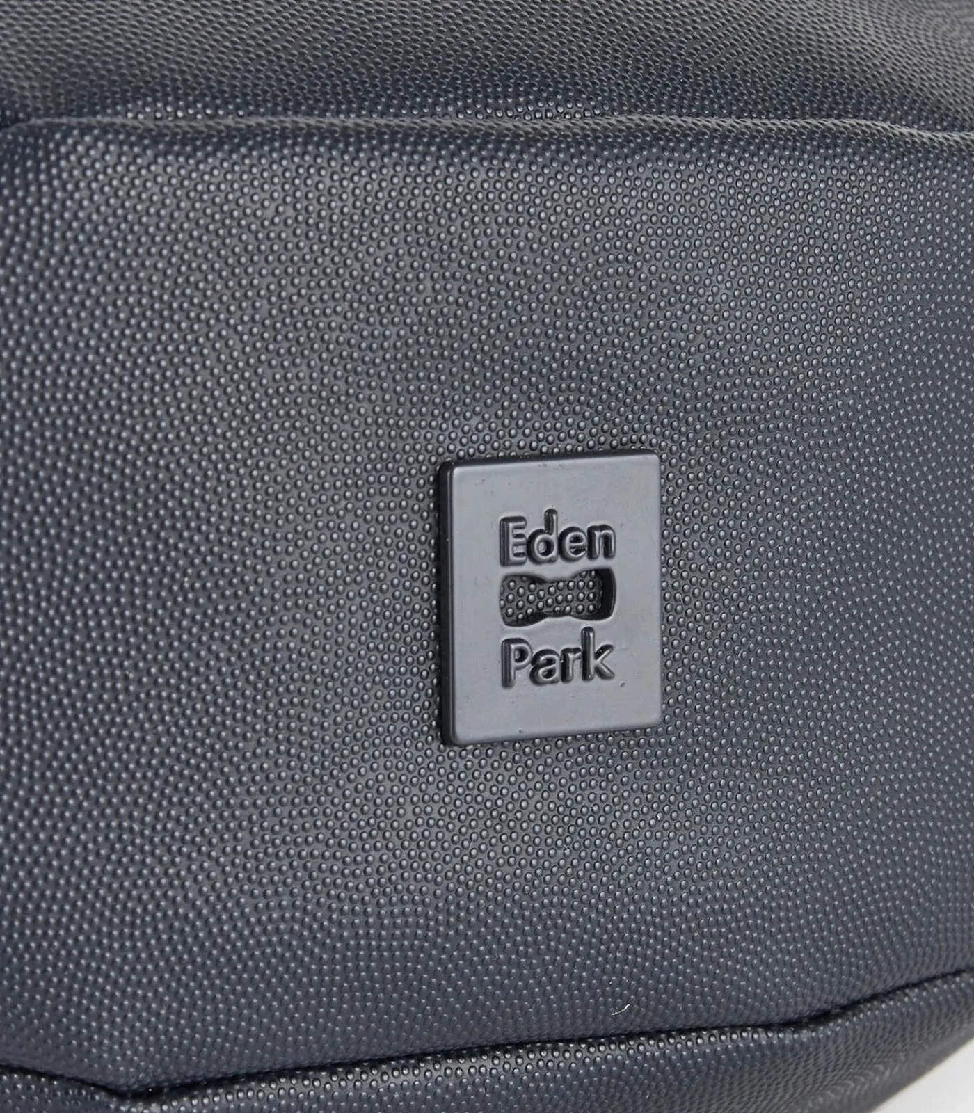 gemaakt van leer rits bovenaan metal zip met treklip eden park branded carabiner square metalen badge met eden park –logo aan de voorkant eden park badge genaaid aan de binnenkant