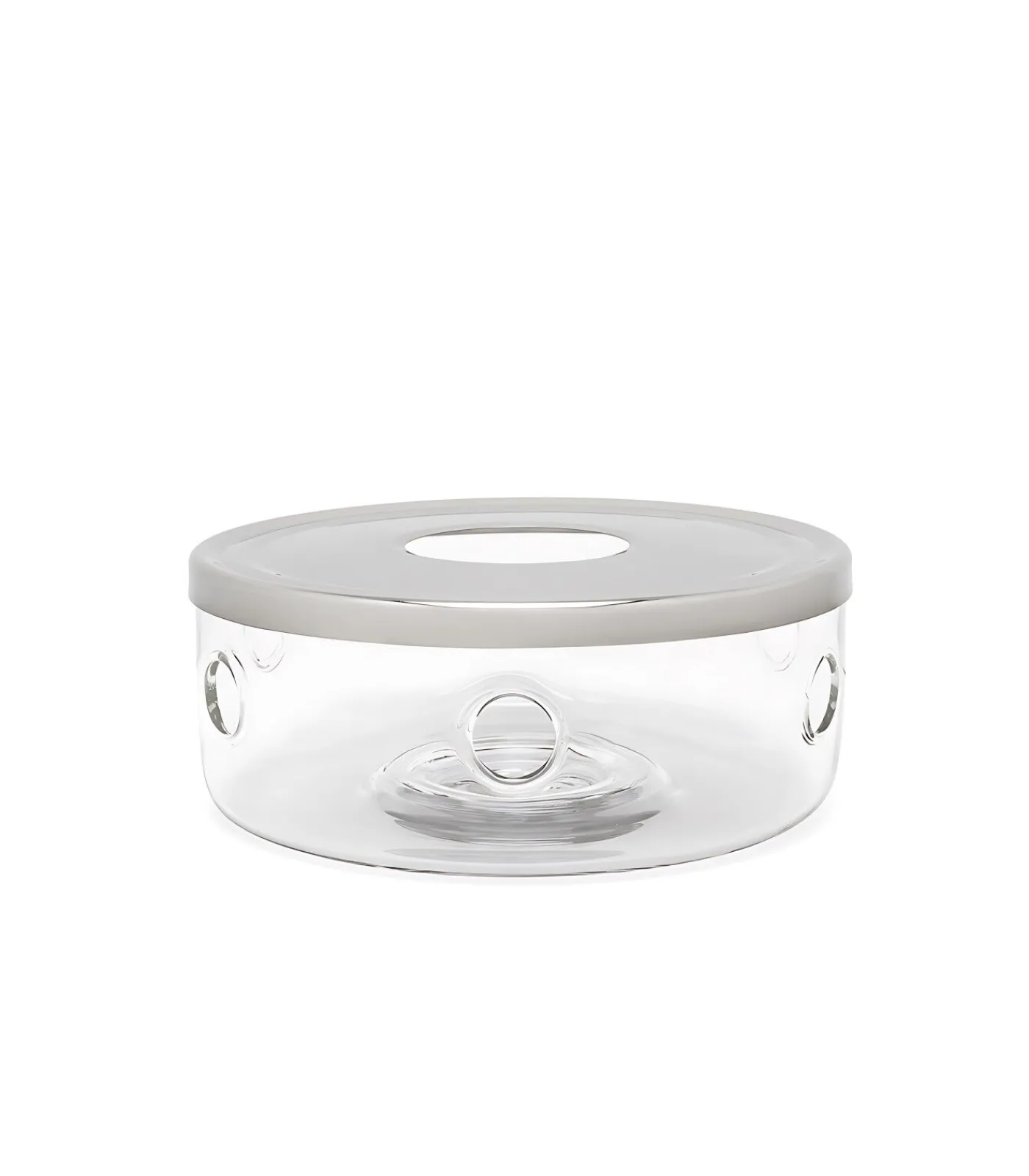 Glazen theelicht van hittebestendig glas dat perect pas bij de Glazen Minuet® Santhee. De bovenzijde is vervaardigd uit roestvrijstaal.