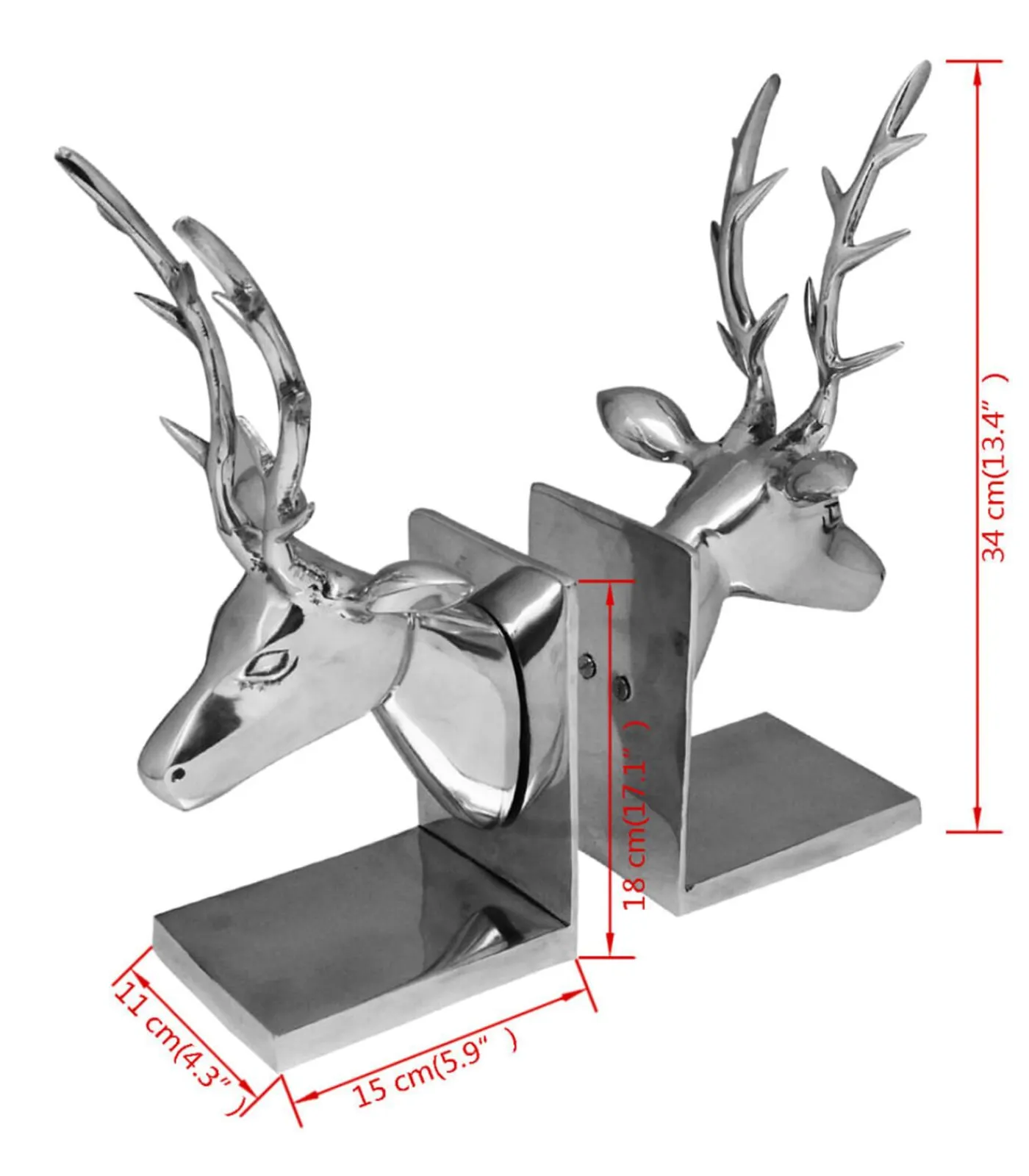 De prachtig vervaardigde boekensteunen zijn gemaakt van hoogwaardig aluminium, dat stevig en duurzaam is. De hertenkoppen geven de steunen een antieke uitstraling en zijn een stijlvolle en elegante aanvulling op uw kamer. De boekensteunen zijn ook een zeer praktische manier om boeken te ordenen en uit te stallen.