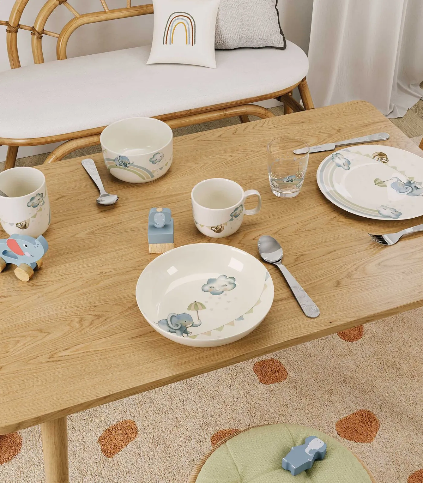 Le damos la bienvenida al universo de estilo boho para público infantil de Villeroy & Boch Toda la gama de productos está específicamente adaptada a las necesidades de los más pequeños – Tamaño óptimo y fácil de manejar. La vajilla, compuesta por platos, tazas y cuencos, inspira con diseños adaptados para niños y convierte cada comida en una experiencia divertida. La colección Boho Kids es un regalo perfecto para diversas ocasiones, como cumpleaños, bautizos o fiestas como Navidad y Semana Santa. Un simpático elefante y su amigo perezoso adornan la decoración “Walk like an elephant”. La cubertería infantil de acero inoxidable destaca con elementos decorativos en relieve. Está óptimamente diseñado para las manos de los niños pequeños, ofreciendo comodidad y seguridad. Naturalmente, libre de sustancias nocivas y apto para lavavajillas. Descubra ahora el desenfadado catálogo infantil de Villeroy & Boch en moderno diseño “Boho”. Naturalmente, libre de sustancias nocivas y apto para lavavajillas.