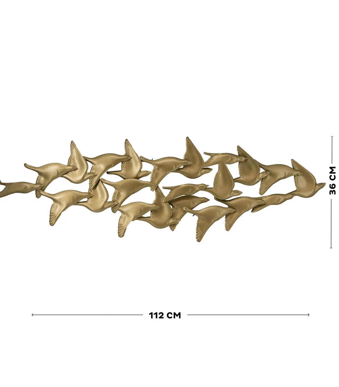 Clearance Metal Art – Golden birds – 36×112 Wanddecoratie