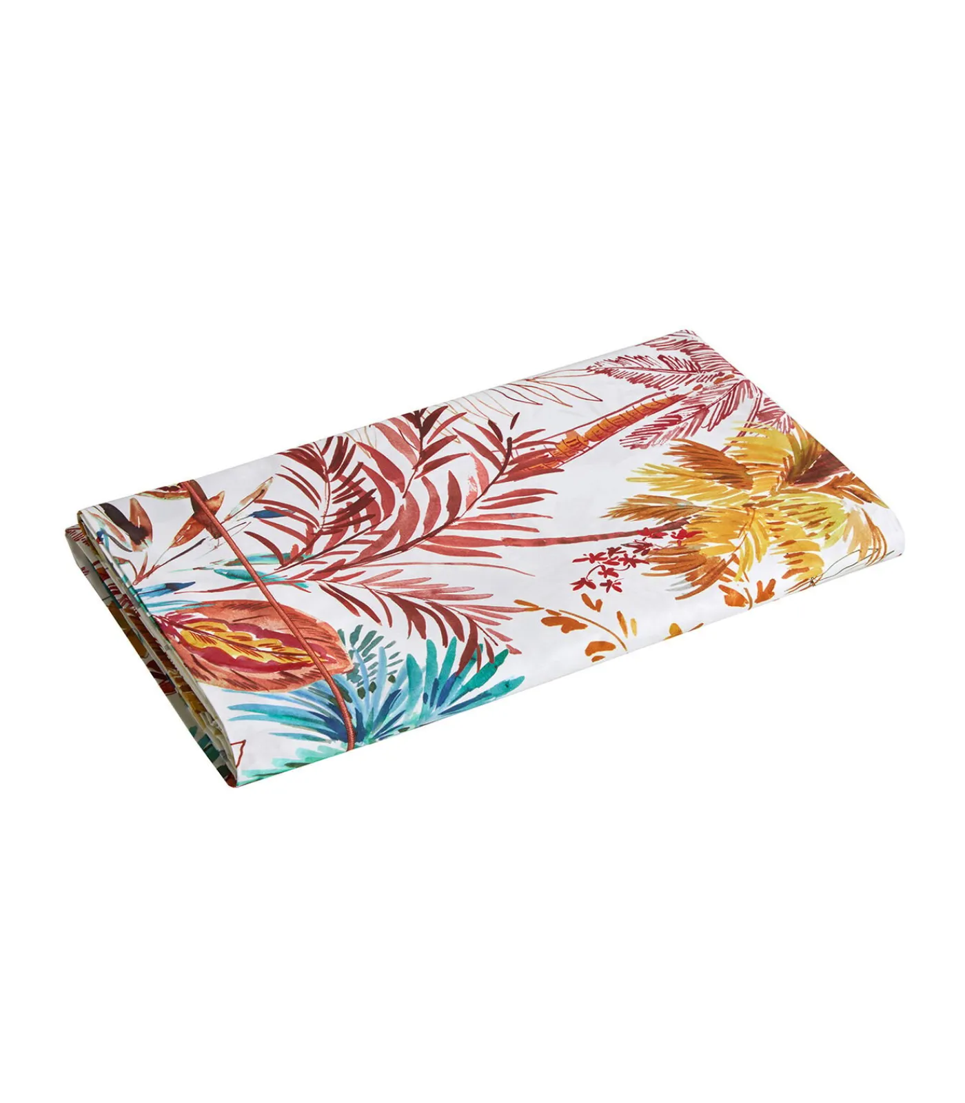 Sublieme versiering met tropische patronen.–Satijn 100% gekamde katoen 120 draad/cm²– Laken met volant en hommel– Gemaakt in FrankrijkBlanc des Vosges, de uitmuntendheid van de Franse productie.Sinds 1843 vervaardigen wij ons huishoudlinnen in onze fabriek in Gérardmer (Vogezen–88)