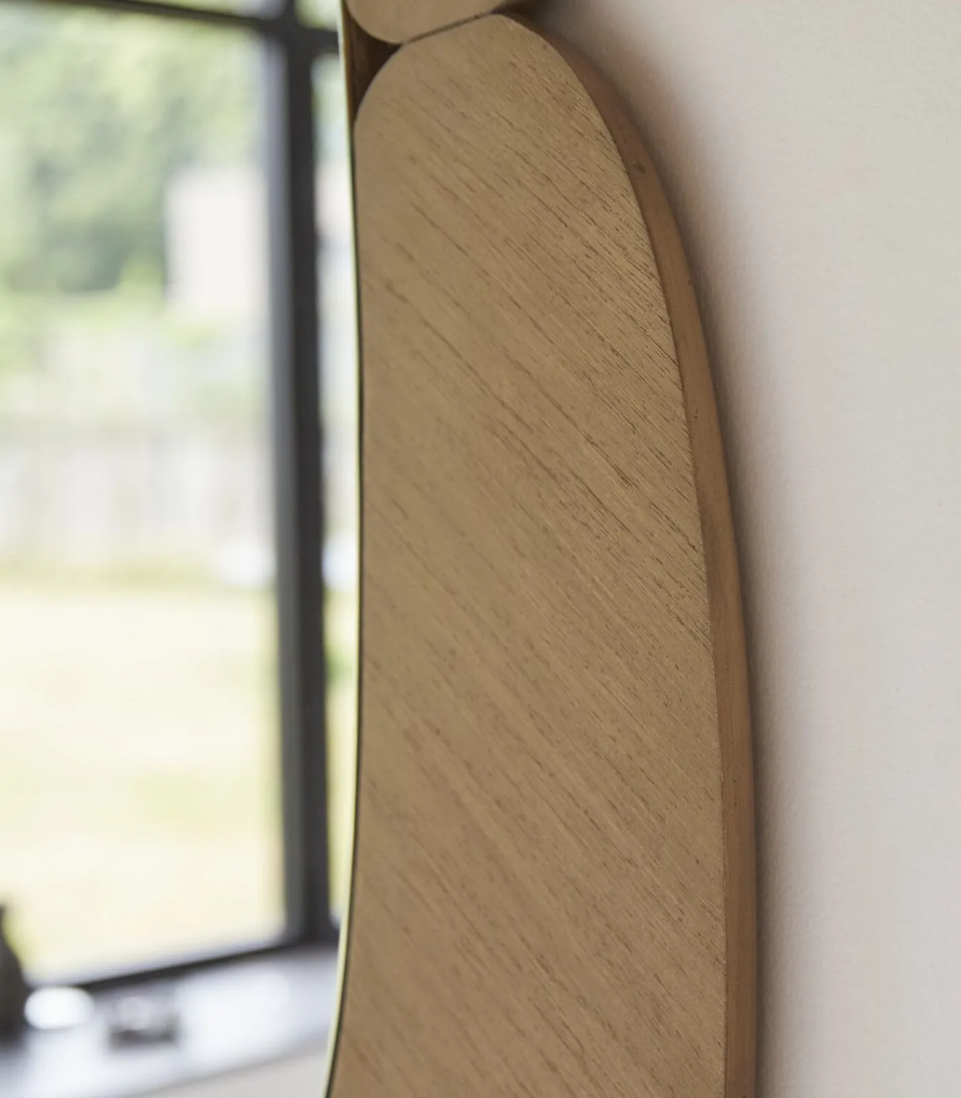 De ovale spiegel Eda met mooie afgeronde vorm in massief mindihout vertoont een lijn die is geïnspireerd op de rondingen van de natuur en heeft een premium kwaliteit. Hij is ideaal om de ruimte visueel te vergroten en geeft extra karakter aan uw interieur. De originele lijn vol karakter zal zeker opvallen in de eetkamer, woonkamer of slaapkamer, bijvoorbeeld boven de bank of buffetkast. U plaatst hem met succes in een gang om de verhoudingen te veranderen of in de badkamer om deze een levendig bohemien accent te geven