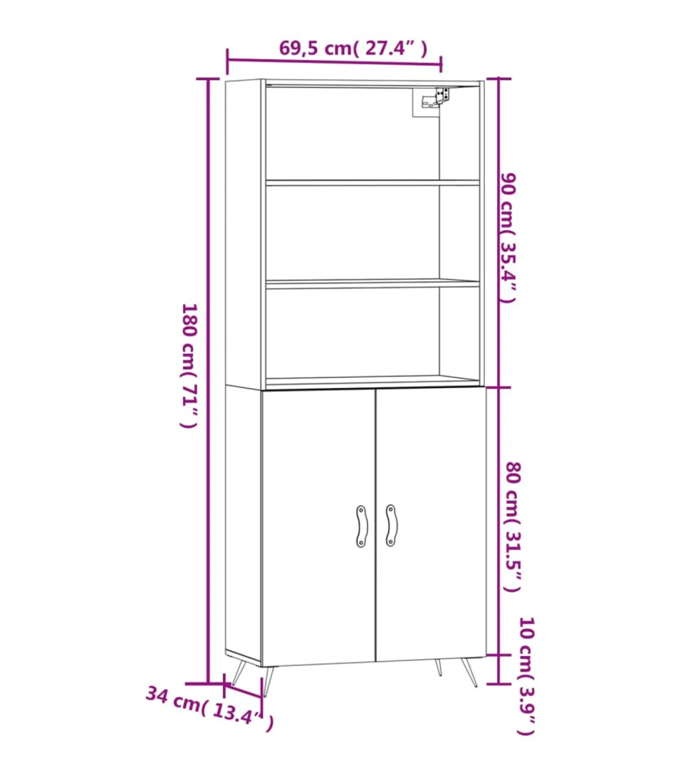 Totale afmetingen: 69,5 x 34 x 180 cm (B x D x H)