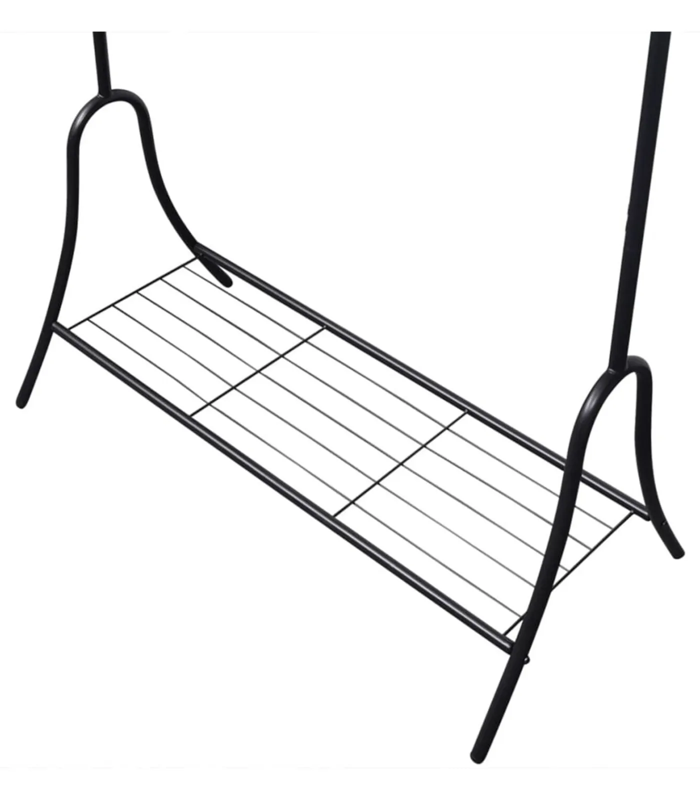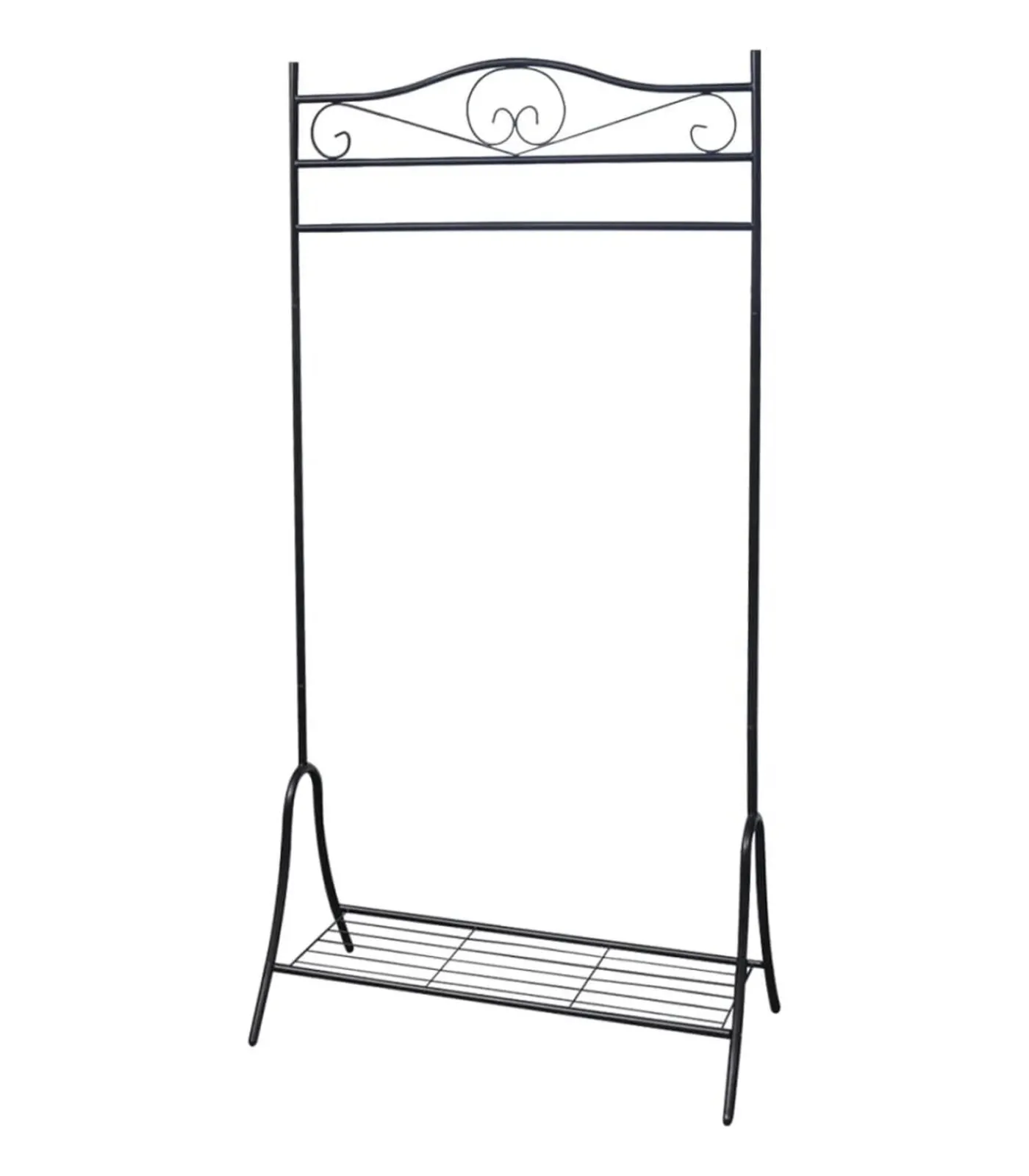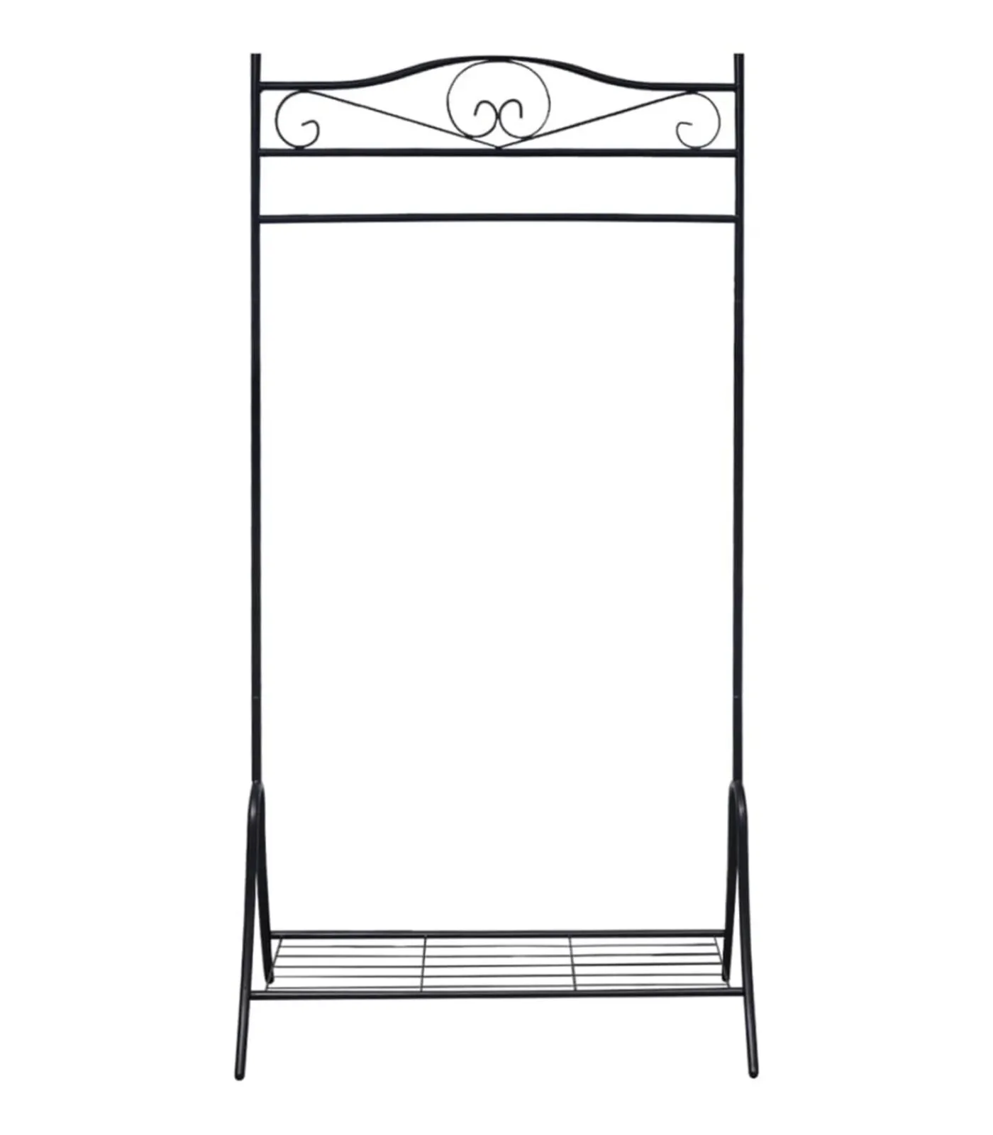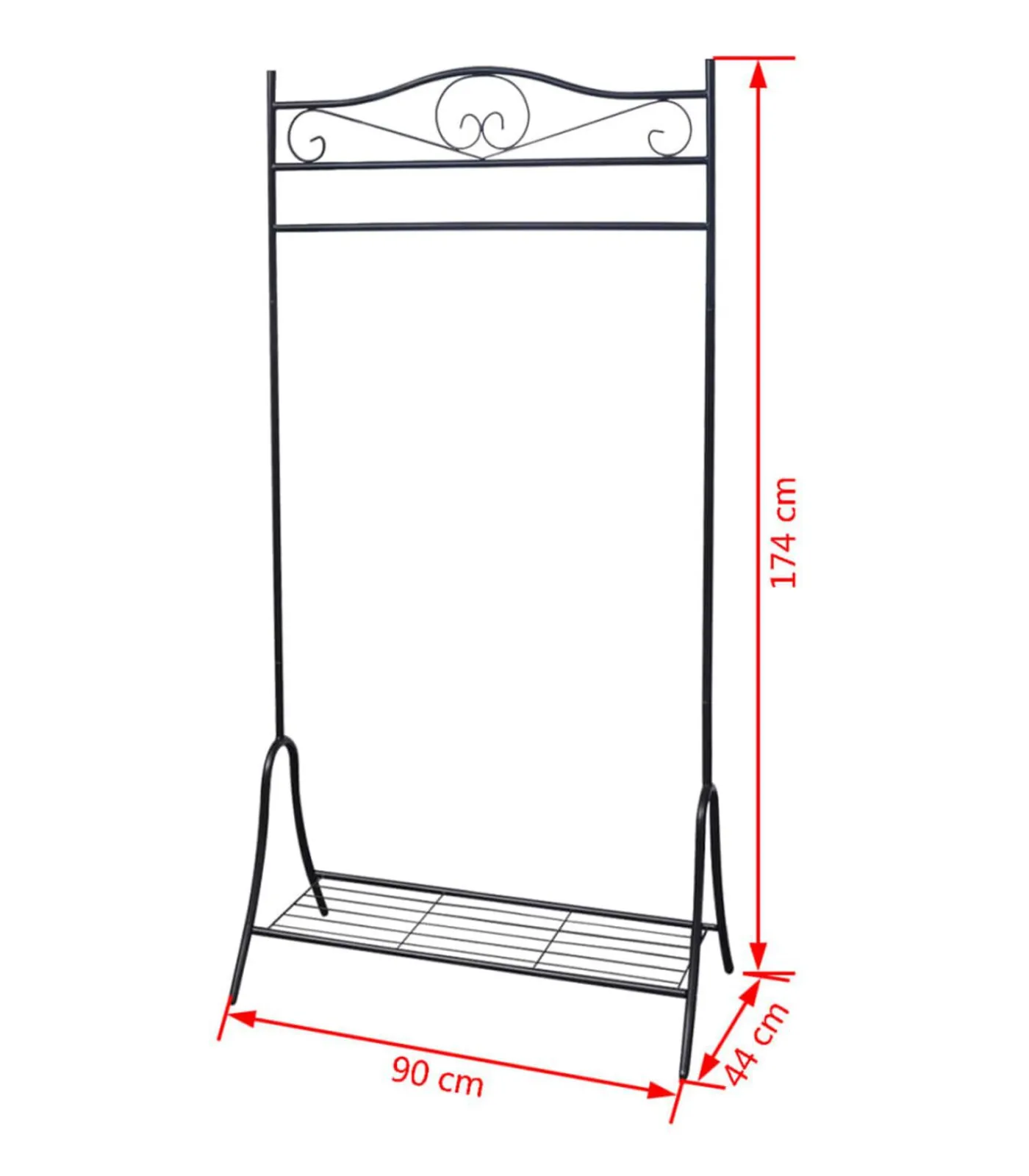 De elegante sierlijke details maken deze kapstok zowel decoratief als praktisch. Dit kledingrek heeft een stevige stalen structuur, waardoor het lichtgewicht maar toch sterk is. Het onderschap kan worden gebruikt om schoenen of manden op te bergen.