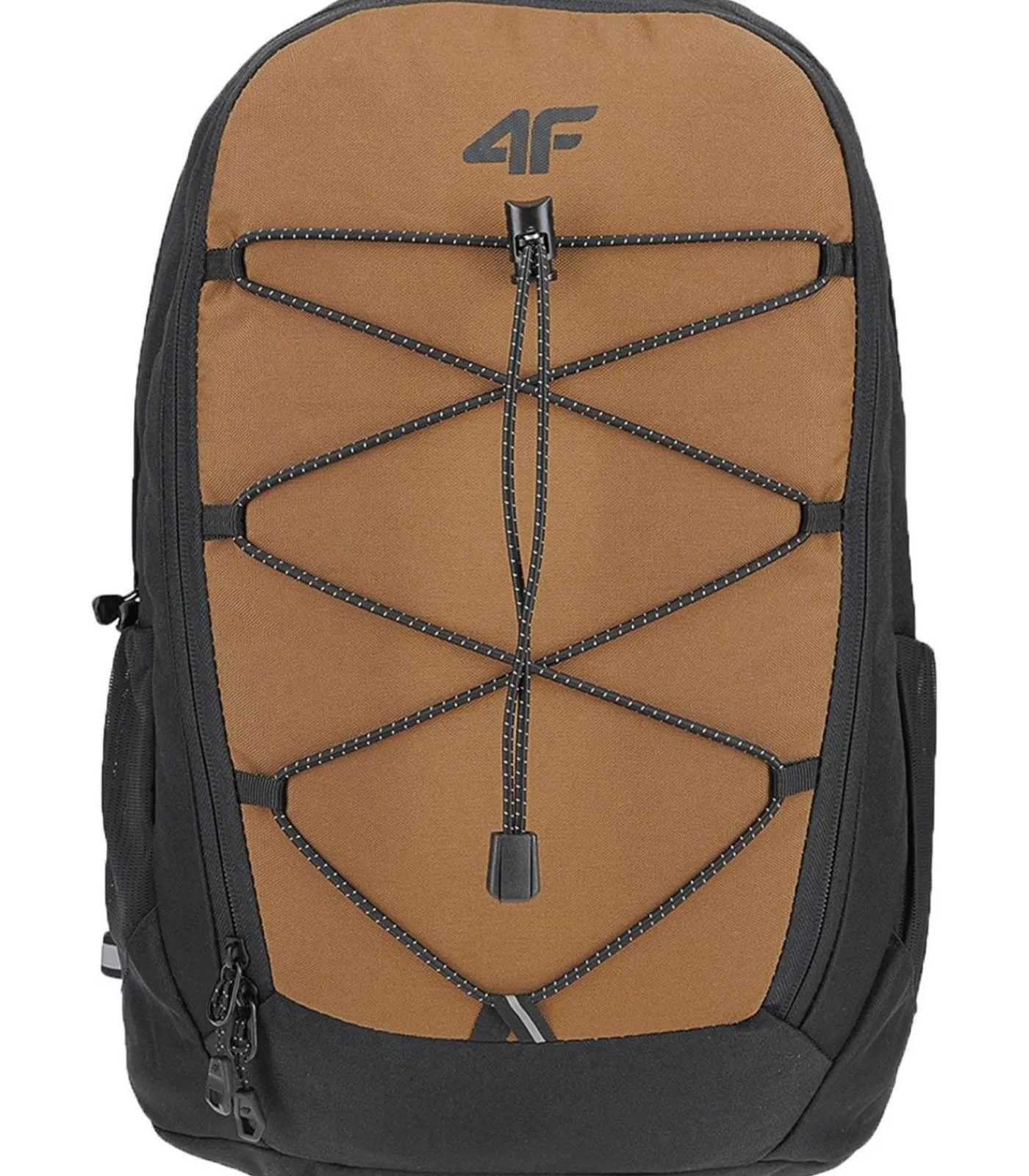 4F, M187 – Bruine Rugzak met 100% Polyester, deze backpack biedt een capaciteit van 21.5 liter. De hoogte is 45cm, de lengte 28cm en de breedte 14cm. Het bevat twee zijzakken en één hoofdcompartiment met laptop–hanger. De ruimte is verdeeld intern. De rugkant is voorzien van een AFS ventilatiesysteem, duurzame waterafstotende behandeling en hydrofobe impregnatie. Het ontwerp toont contrastdetails, het logo en is gladslijtend. Het bevestigingssysteem is tweewegrijs. Verder biedt dit rugzak ook verstelbare borstriem, schouderriem, bungee koorden, karabijnhaak, grijphandvat, reflecterend detail, versterkte achterkant en trekkoord voorkant.