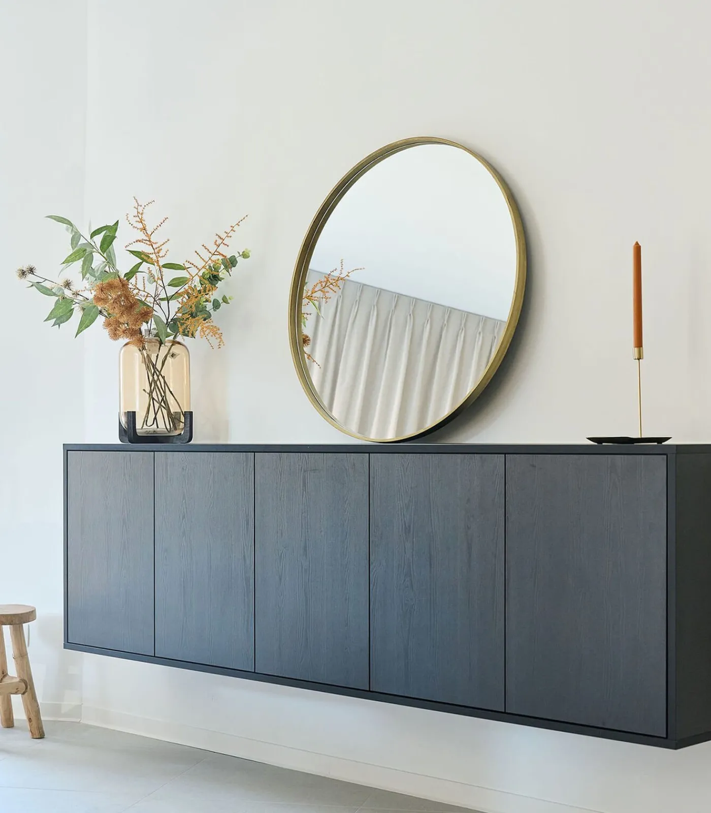 Spiegels kunnen niet praten. Gelukkig kunnen ze ook niet lachen. Wel leunen ze elegant achterover en laten ze jou focussen op hoe goed je er vandaag uitziet. Of ze wijzen er stilletjes op dat polkadots en ruiten geen goede match zijn… Een spiegel is een aanwinst voor elke ruimte: boven het dressoir in de slaapkamer, als wanddecoratie in de woonkamer of als verwelkoming van de gasten in de hal. Functioneel. Mooi en elegant. Een optische illusie zelfs, waardoor elke kamer op een subtiele manier virtueel groter wordt.Onze ronde spiegel Merope heeft een diameter van 80 cm en wordt omhuld door een prachtige rand uit antiek brass (goud) Zoekwoorden : rond, ovaal, Industrieel, Wandspiegel, metaal