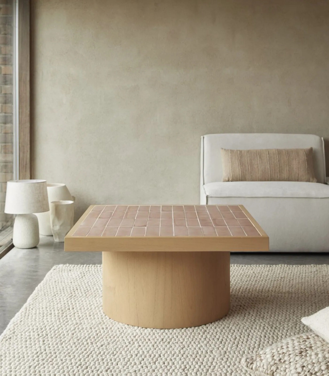 De Karel salontafel combineert mindihout en keramiek tot een elegant en robuust ontwerp. De brede basis zorgt voor stabiliteit, terwijl het keramiek een origineel en warm accent toevoegt.