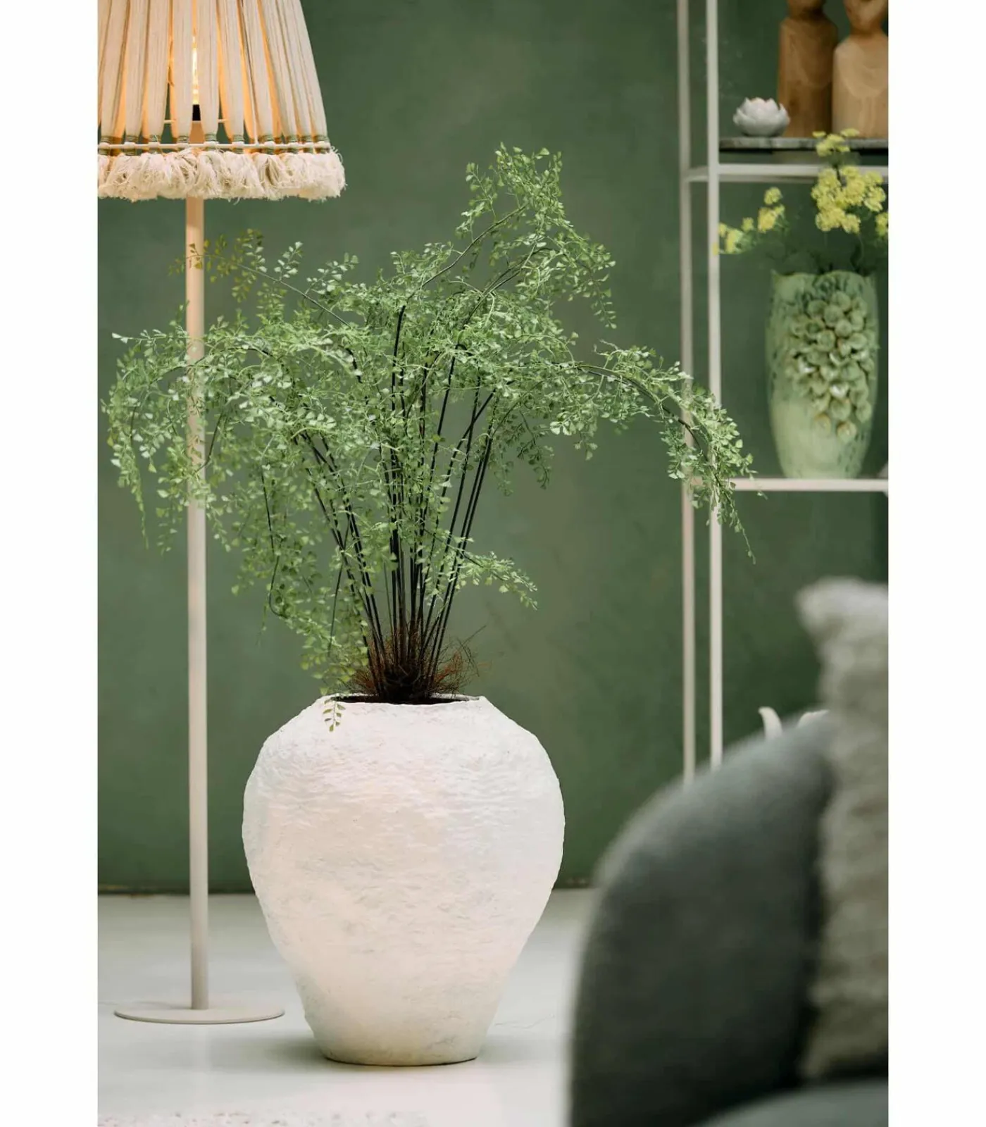 Met deze Pantoja bloemenvaas fleur je jouw huis helemaal op! Een vaas is de perfecte manier om jouw interieur net wat persoonlijker te maken. Deze vaas heeft het uiterlijk van papier maché, maar is gemaakt van kunststof. Zet de vaas op de eettafel met een prachtig boeket droog– of kunstbloemen en creëer zo een echte eyecatcher. Of zet de vaas in een open kast om zo de kast gezellig aan te kleden. Vazen maken de lege plekjes in huis net wat gezelliger. Een vaas is niet alleen geschikt voor droog– of kunstbloemen maar ook voor een paar losse takken. Dit zorgt voor een gaaf modern effect.