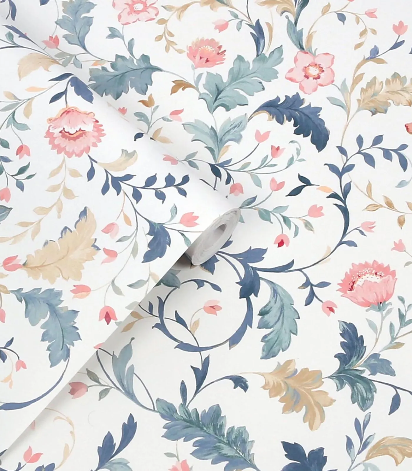 Litton roept de sfeer op van een bloeiende tuin en is een prachtige print in een kunstnijverheidsstijl met een delicaat arrangement van zachte bloemen verweven met bladeren.