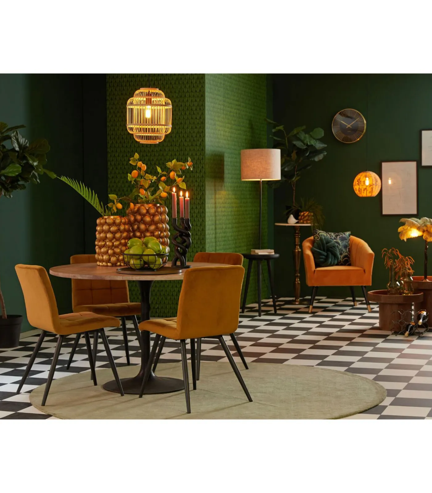 Til uw interieur naar een hoger niveau met de natuurlijke charme van de Jeppe hanglamp! Gemaakt van bamboe in een rustgevende natuurlijke kleur, werpt deze ronde lamp met zijn gedeeltelijk open ontwerp een speels lichtpatroon op uw muren. De lamp zorgt voor zowel een warme als gezellige ambiance en is afgewerkt met een stoffen snoer en een strakke matzwarte kap van smeedijzer.Boven uw eettafel, in de hal of in de slaapkamer, deze veelzijdige lamp maakt uw interieur moeiteloos compleet. Perfect voor moderne, botanische of landelijke interieurs, voegt de Jeppe lamp een vleugje warmte toe aan elke ruimte.