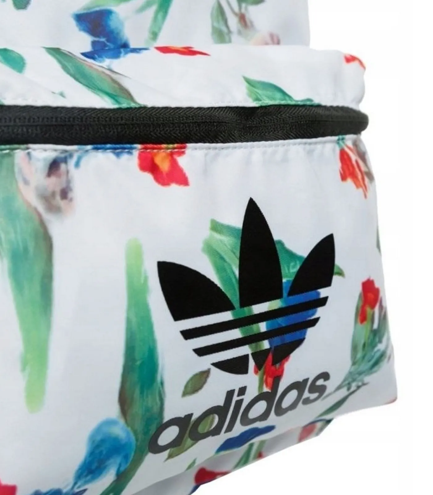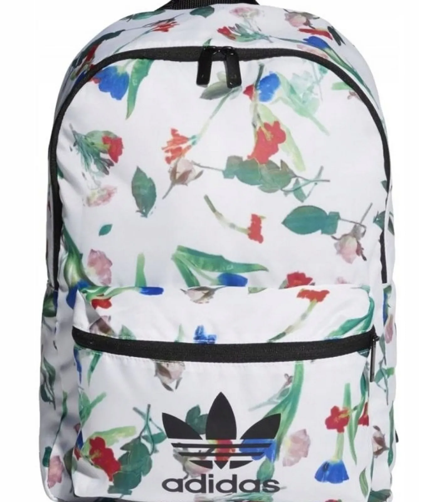 Adidas Classic Wit Zakdoek met een–een rugzak. Deze zakdoek heeft 1 voorzak en ritssluiting. Het hoofdcompartiment telt 1 compartment. Er is een verstelbare schouderriem en grijpgreep. Het ontwerp van deze zakdoek is alle–alle overdruk met bloemen en logo. Deze zakdoek wordt vastgezet met twee–twee ritzen.