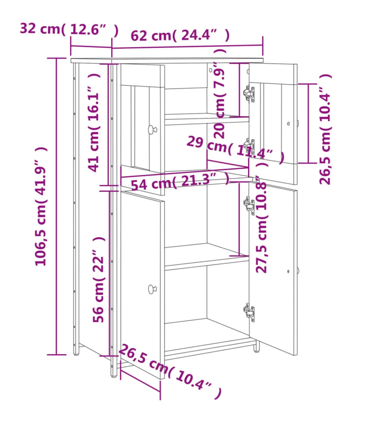 Afmetingen: 62 x 32 x 106,5 cm (L x B x H)