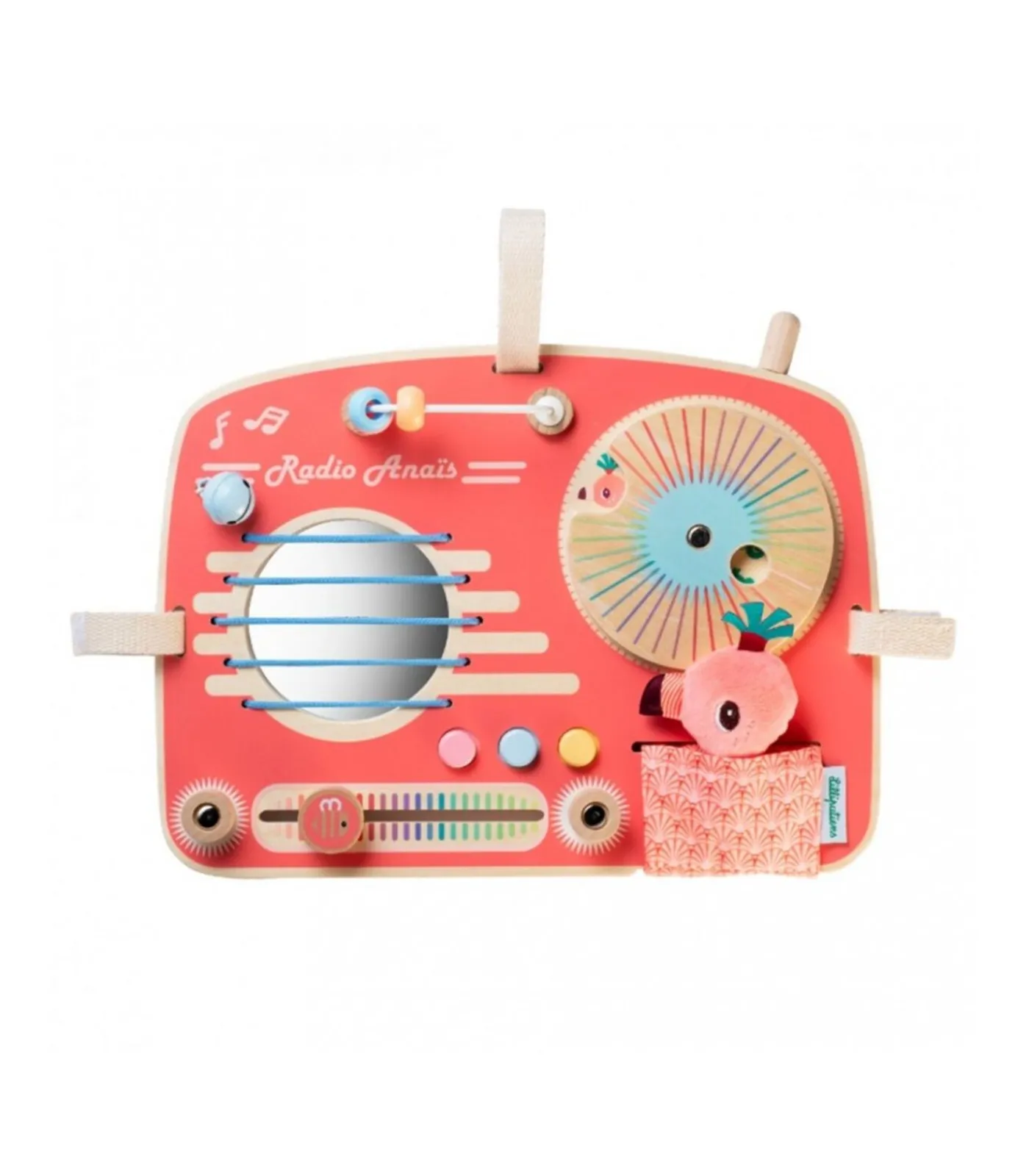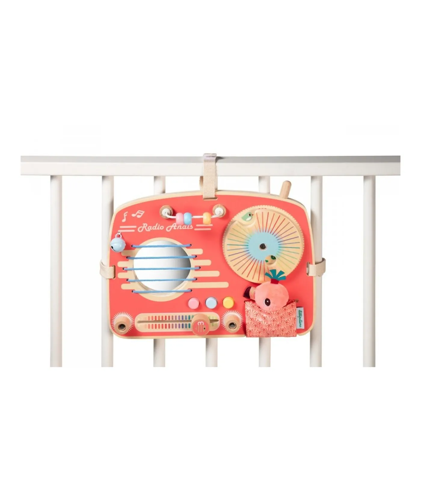 Dit houten paneel in de vorm van een radio is rijk aan activiteiten en materialen om de ontdekkingsdrang van kleintjes te stimuleren. Bedien de knoppen en de toetsen en luister naar radio Anaïs . Makkelijk aan de babybox te bevestigen met de velcrolinten. Wasinstructies: Stofelementen: machinewasbaar op 30 ° CAfmeting product: 28 x 1 x 20,5 cm