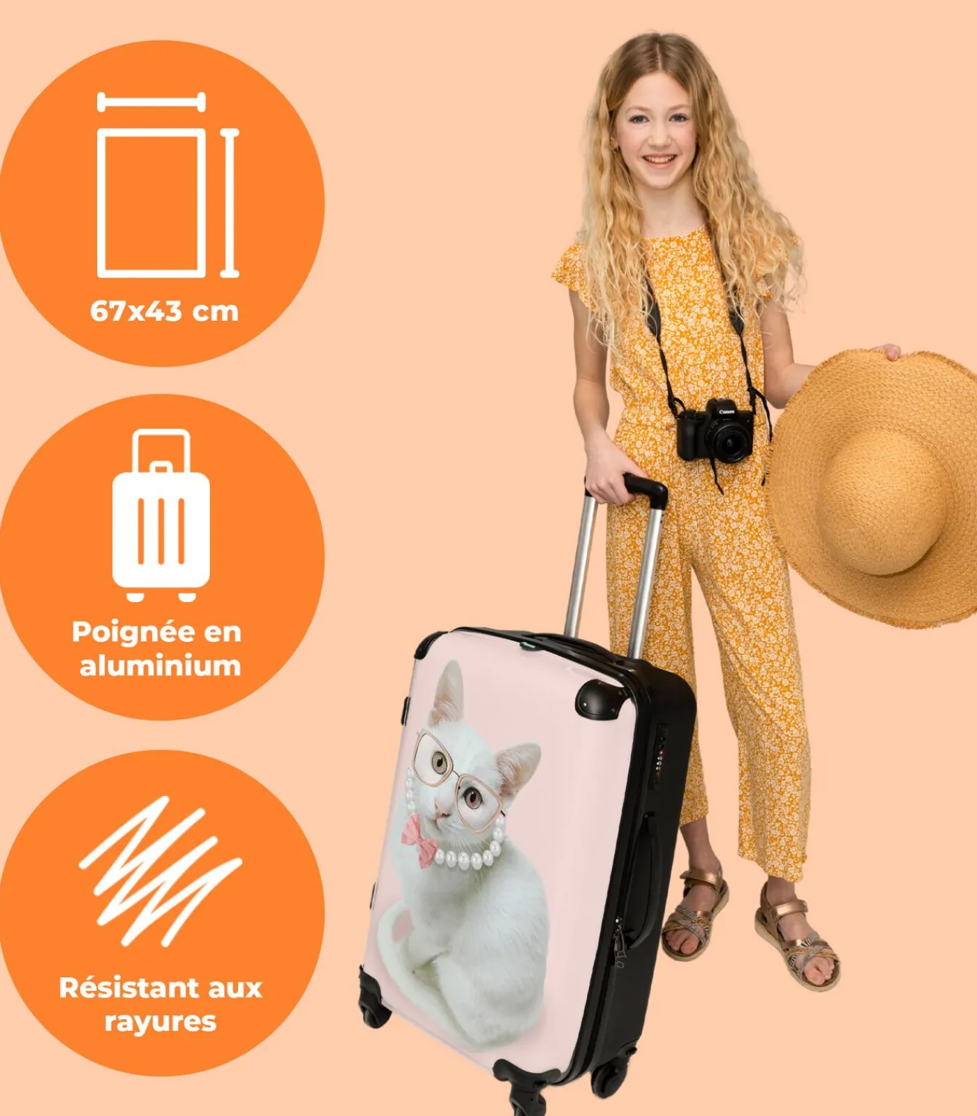 Hot Ruimbagage koffer met 4 wielen en TSA slot (Kat – Parels – Bril – Roze) Trolleys